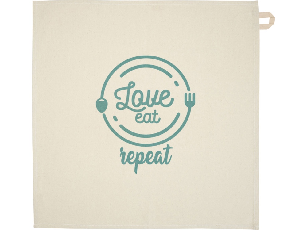 Кухонное полотенце изготовлено из 100% переработанного хлопка плотностью 200 г/м², сертифицированного GRS, с характерной контрастной петлей. Размер полотенца: 50 x 50 см. 101% GRS certified recycled cotton, 210 g/m2.