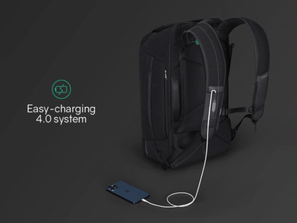 Новое поколение рюкзаков для молодых и стильных! Рюкзак-трансформер очень вместительный и удобный, может служить и рюкзаком, и сумкой для командировок и поездок. Размеры рюкзака соответствуют требованиям к ручной клади большинства авиакомпаний. - ремень для крепления на чемодан - большое вместительное отделение для одежды - карманы быстрого доступа сверху, закрывающиеся на магнит и молнию - боковой карман для бутылки или зонта - органайзер с сетчатыми карманами на молниях - отделение для обуви с вентиляцией - карман на лямке для карт с RFID защитой - современный USB-C - выход - отделение для внешнего аккумулятора (в комплект не входит) - TSA замок - спереди светоотражающий элемент для большей защиты в темное время суток - специальная конструкция лямок со встроенными цилиндрами с воздухом позволяет снизить нагрузку на плечи и спину - фиксация лямок на груди с помощью магнита - дополнительный ремень с магнитной пряжкой и мягкими подложками для фиксации на талии (в комплекте) - лямки регулируются по длине - дышащая спинка с анатомическими вставками - возможность открытия рюкзака до 180 градусов - противоугонный трос с ретрактором - водостойкий чехол в комплекте