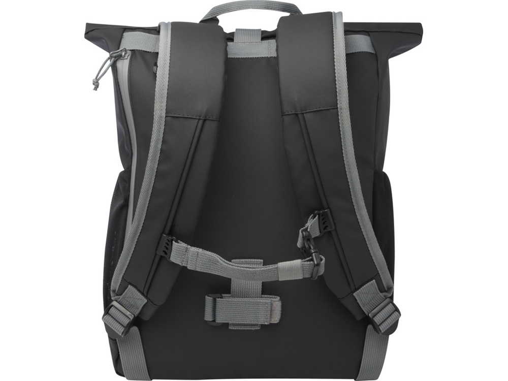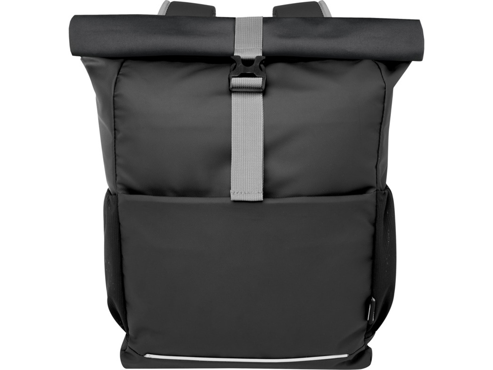 Водонепроницаемая велосумка со скручиваемым верхом, изготовленная из переработанных материалов, сертифицированных по стандарту GRS. Она имеет мягкое отделение для ноутбука с диагональю 15 дюймов, несколько карманов-органайзеров, регулируемую застежку липучку для удобной установки на различные велосипеды и светоотражающую окантовку для обеспечения видимости. Из переработанных материалов, сертифицированных по стандарту GRS, изготовлены основная ткань, подкладка, лямки и застежки-молнии. Емкость: 20 литр. Не содержит ПВХ. GRS certified recycled polyester.