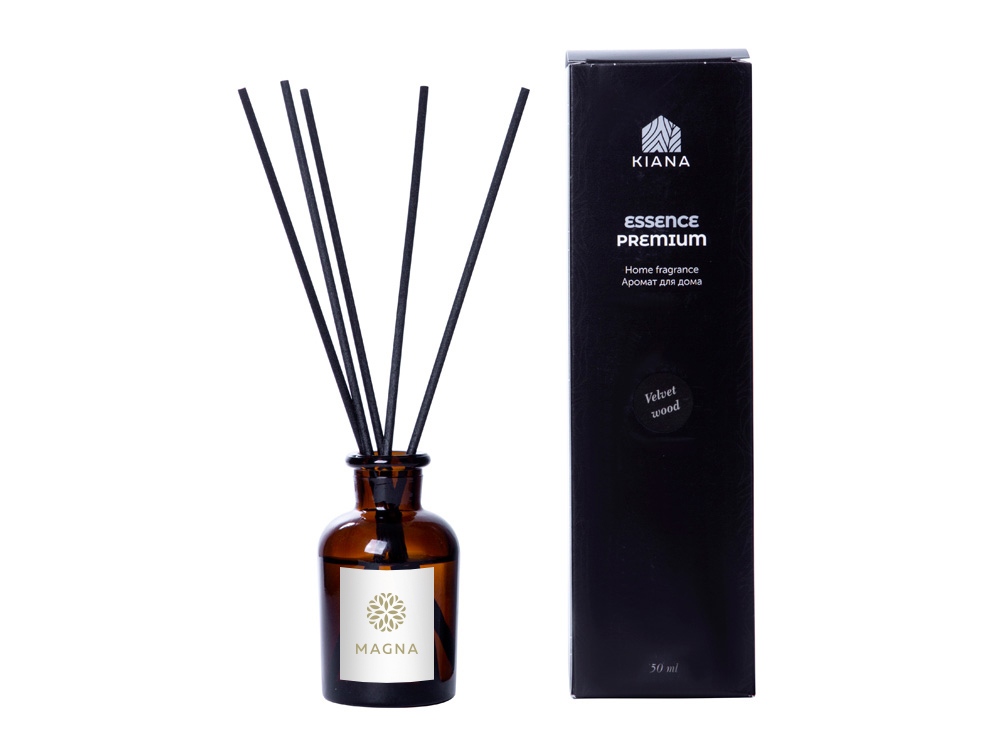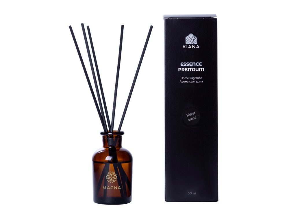 Аромадиффузоры бренда KIANA создают приятную атмосферу спокойствия, которая помогает отдохнуть и настроиться на позитивные мысли и эмоции. Velvet wood — часть серии Essence Premium, премиальной линейки KIANA, которая объединяет ароматы для дома повышенной концентрации. Это многоцветный аромат груши, нероли, жасмина, кофе, подчеркнутый древесными нотами. Объём диффузора 50 мл. Его будет достаточно для умеренного поддержания аромата в комнате до 15м2 в течение двух месяцев использования. Насыщенность аромата регулируется количеством используемых фибровых палочек. • Создаст приятную атмосферу спокойствия • Мягкий и тёплый • Хватит на два месяца использования Essence Premium предлагает вашему вниманию насыщенные и глубокие ароматические композиции, погружающие в негу и блаженство. Пирамида аромата состоит из верхних, средних и базовых нот, которые освежат воздух в вашем доме и создадут приятную атмосферу.