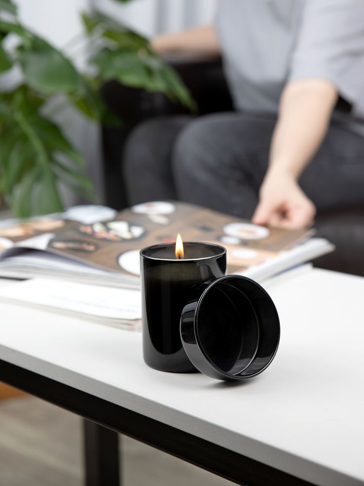 Ароматическая свеча Flikka, сандал и амбра, черная купить оптом и в розницу с нанесением логотипа в Казани