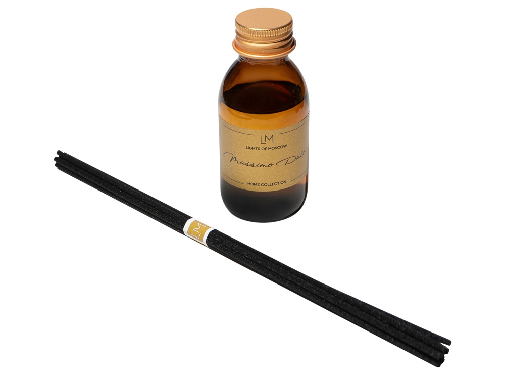 Диффузоры - это простое, изящное и долговременное решение, как наполнить пространство приятным ароматом. Для аромадиффузоров Lights of Moscow используем премиальные ароматизаторы из Европы и США, экологичную базу, фибровые палочки и качественную тару. Massimo Dutti - испанский бренд, имеющий сотни бутиков одежды и аксессуаров по всему миру. Фирменный аромат является неотъемлемой частью дизайна: не важно, где Вы находитесь, в Москве или Венеции, бутик Massimo Dutti сложно перепутать, уже рядом со входом ощущается богатый аромат мускуса и сандала. Теперь Вы можете создать в своем пространстве атмосферу исключительной роскоши. Аромат MD можно охарактеризовать как смолистый, дымный, удовый. Верхние ноты: гелиотроп, сандал, жасмин Средние ноты: боярышник, ваниль Базовые ноты: корица, мускус, амбра Комплектность: - Подарочный брендированный тубус - 1 шт. - Колба янтарная стеклянная с жидкостью - 1 шт. - Фибровые палочки, запечатанные фтрменной наклейкой LM - 7 шт. - Инструкция - 1 шт. - Открытка - 1 шт. - Упаковочная бумага - 1 шт. Условия хранения: — Свечи, аромасаше, аромадиффузоры, SPA-наборы следует хранить при температуре +18…+24 °C, вдали от источников тепла, сквозняков и прямых солнечных лучей. — Рекомендуемая влажность — не более 50%. — Избегайте длительного воздействия яркого света.