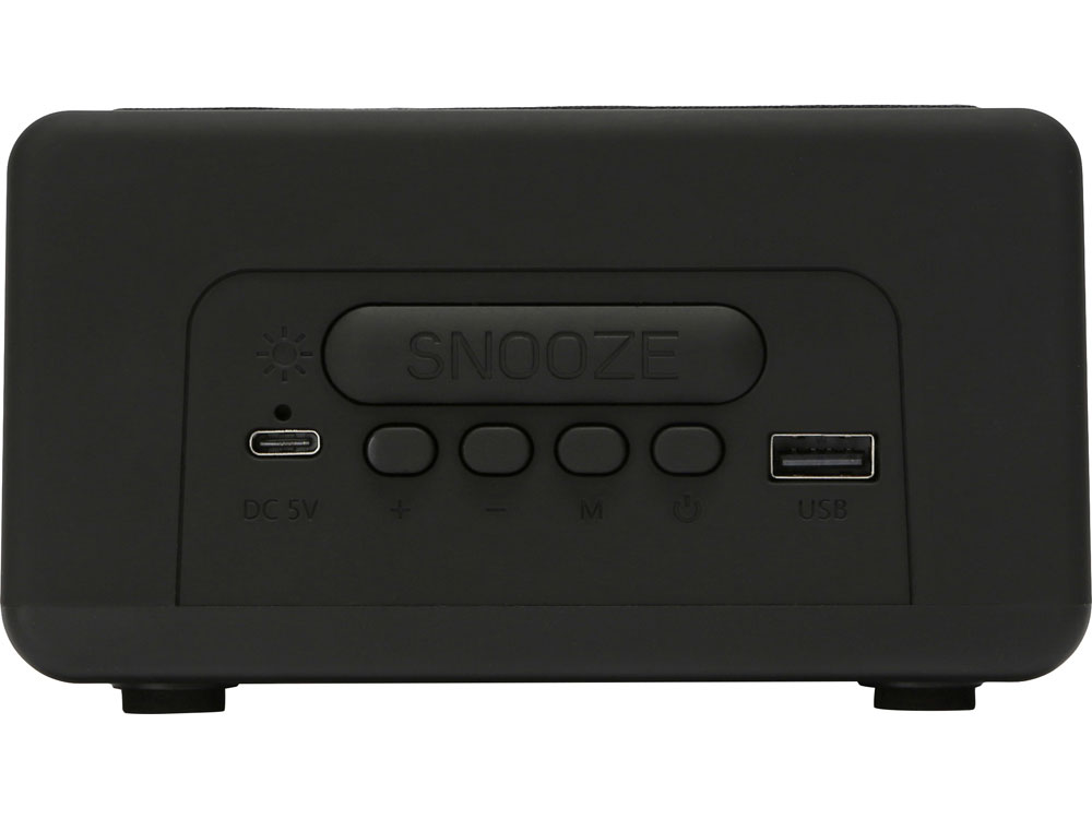 Беспроводная колонка с часами и функцией беспроводной зарядки Sentry от Evolt. Устройство может работать автономно, что позволяет использовать его в любой точке квартиры и за ее пределами и избавиться от проводов на рабочем столе. Колонка подключается к смартфону при помощи Bluetooth, имеет большой динамик, занимающий собой всю нижнюю панель Sentry. Передняя зеркальная панель выступает в роли циферблата: во включенном виде на ней проявляются цифры и статусы. При настройке будильника вы можете выбрать одну из пяти мелодий или установить радио в качестве сигнала. Sentry предусматривает возможность установки двух будильников на разное время, а также можно повторить сигнал через 5 минут. Колонка заряжается от сети, при подключении к ней Sentry можно использовать беспроводную зарядку: положите ваш смартфон поверх колонки, и устройство автоматически начнет заряжаться. В автономном режиме функции беспроводной зарядки и радио не активизируется в целях сохранения батареи. - беспроводная, работает автономно - радио - интересный дизайн с зеркальным дисплеем - будильник с 5 мелодиями, возможно добавить 2 будильника на разное время, удобная кнопка повтора сигнала через 5 минут - большой динамик - функция беспроводной зарядки