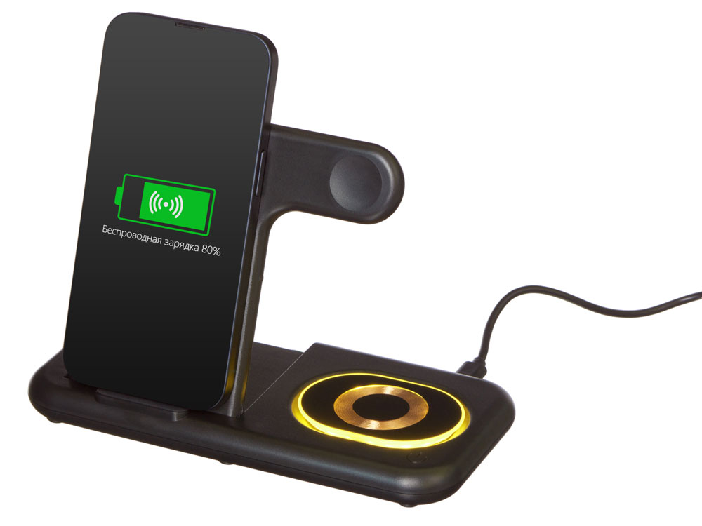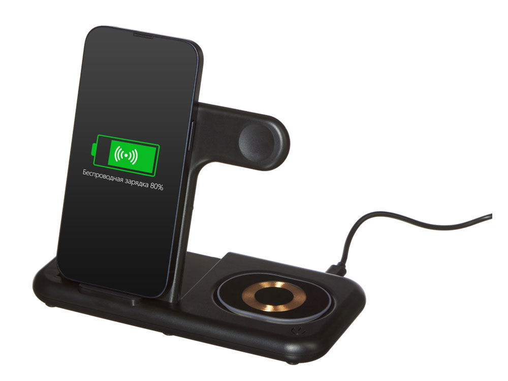 Беспроводная зарядная станция 3-в-1 MajestIQ, 15 Вт (Р) купить оптом и в розницу с нанесением логотипа в Казани
