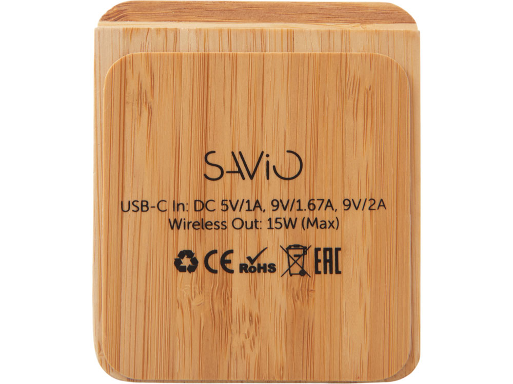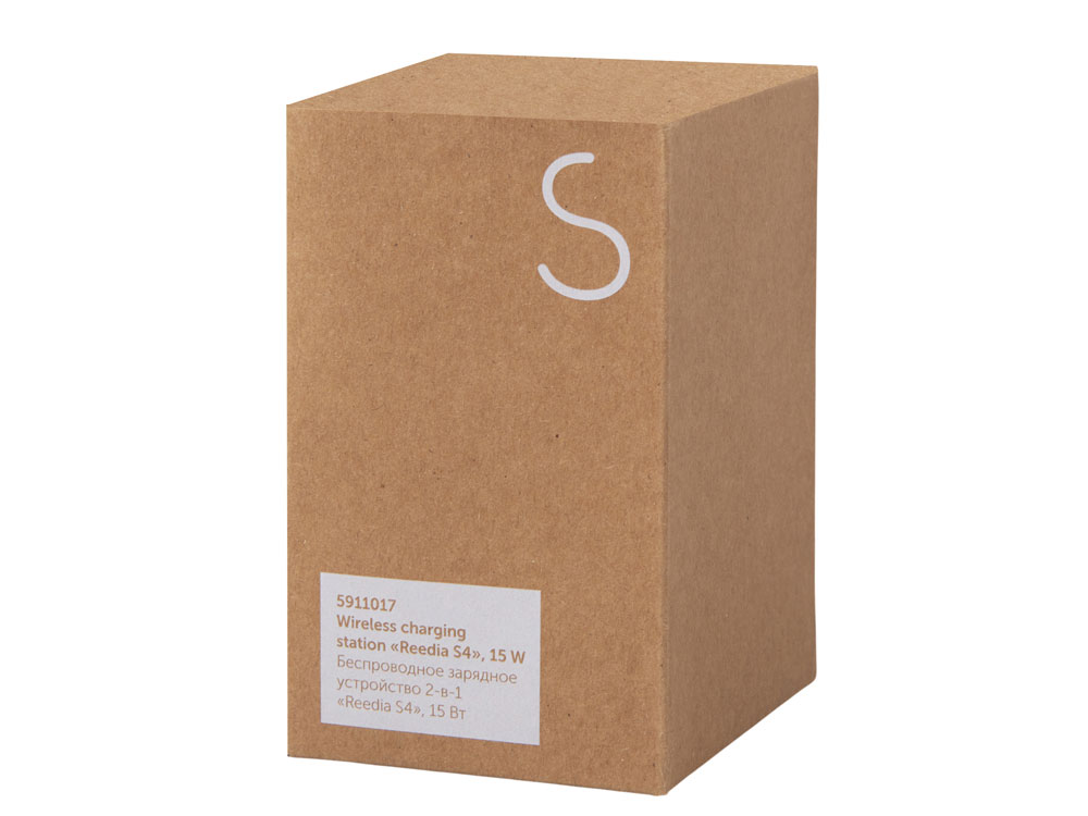 Беспроводное зарядное устройство 2-в-1 с подсветкой лого Reedia S4, 15 Вт, бамбук, черный