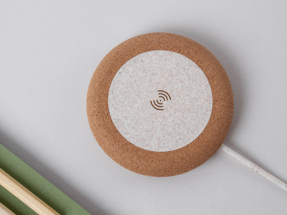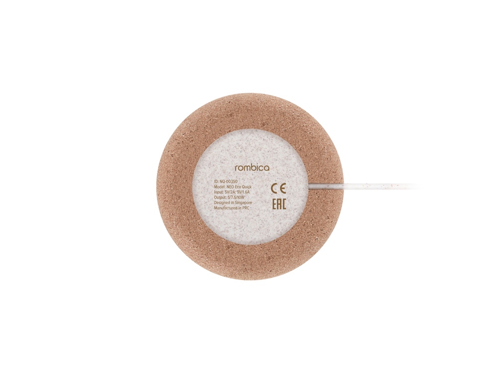 • Совместимо с устройствами, изготовленными по стандарту Qi • Корпус из пробки • Быстрая зарядка. Поддерживает быструю зарядку в режимах 7.5W и 10W* *для зарядки в быстром режиме 7.5W или 10W необходимо использовать сетевое USB ЗУ (в комплект не входит), поддерживающее технологию Quick Charge 2.0/3.0.