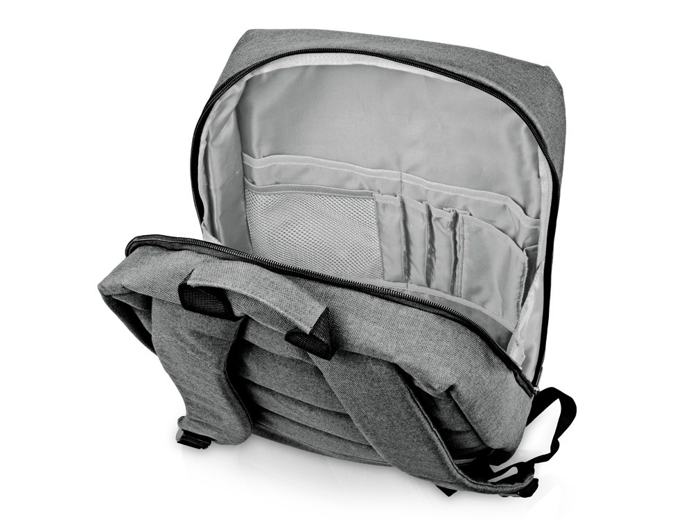 Стильный бизнес-рюкзак с отделением для ноутбука до 13,3. Несколько внешних карманов на молнии позволяют разместить в них любые предметы, необходимые в дороге: документы, пластиковые карты, портмоне, а удобный органайзер внутри подойдет для мелочей. Основное отделение можно раскрыть практически полностью благодаря боковым молниям. Дизайн рюкзака позволяет сделать нанесение на большой площади.