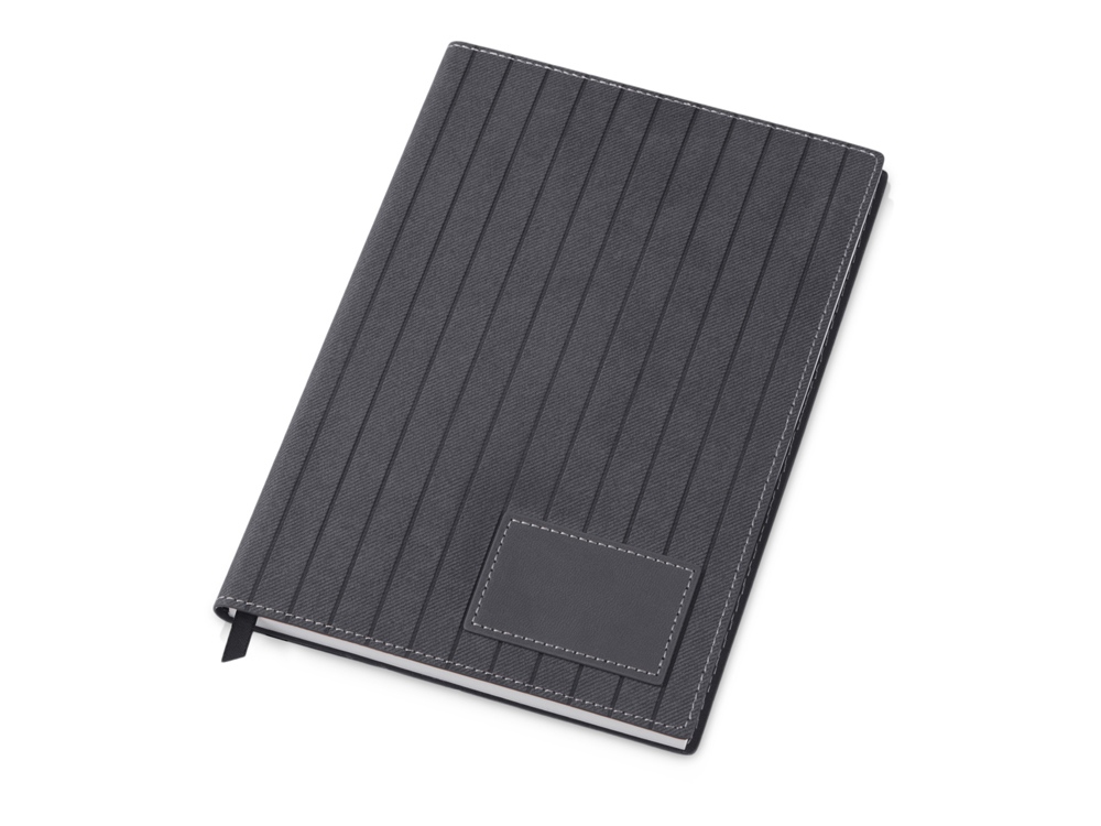 Необычный офисный блокнот станет прекрасным деловым мерчем. Гибкая текстурная обложка позволяет выполнить нанесение в двух вариантах - на самой обложке и на однотонном патче в правом нижнем углу. Внутри блокнота 80 листов кремовой бумаги повышенной плотности 80 г/м2 с FSC сертификатом.. Линовка основного блока в линейку, в конце по 4 страницы в клетку, в точку и нелинованные + 1 страница с линейкой. - ляссе в тон обложки; - формат А5; - бумага с сертификатом ответственного лесопользования FSC.