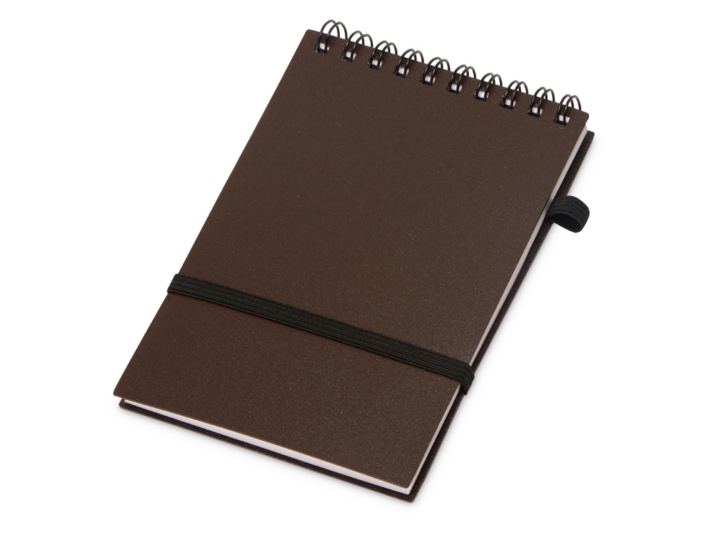 Оригинальный блокнот с обложкой из пластика и кофейного жмыха, а также блоком из переработанной бумаги. Петля для ручки и горизонтальная резинка расширяют функциональность.