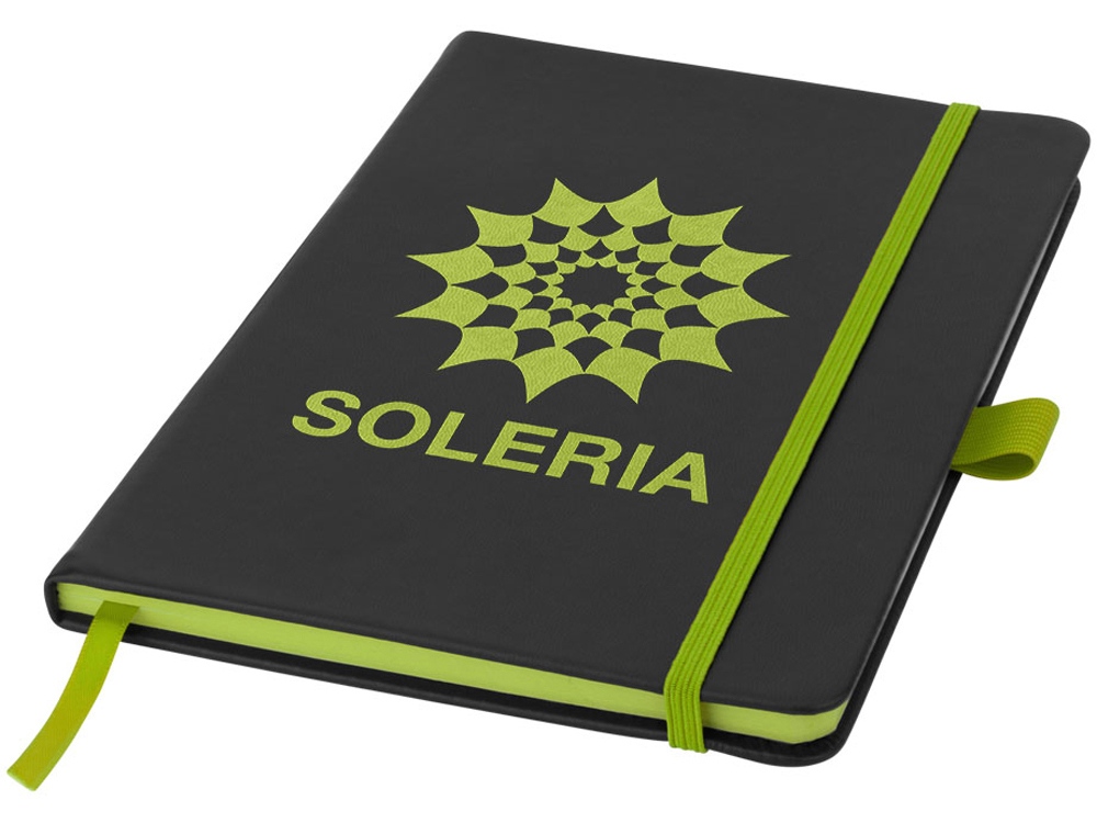 Блокнот Color edge A5. Блокнот А5, 80 листов бежевой бумаги (70 г/м2). С закладкой и эластичной застежкой. ПУ.