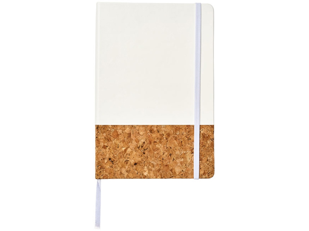 Блокнот Evora формата A5 из пробки и термополиуретана. Стильный блокнот формата A5 с твердой обложкой из искусственной кожи и пробки. Цветная эластичная застежка, лента-закладка, 80 листов линованной бумаги (80 г/м²) кремового цвета и расширяемый карман сзади для небольших заметок. Пробка и ПУ.