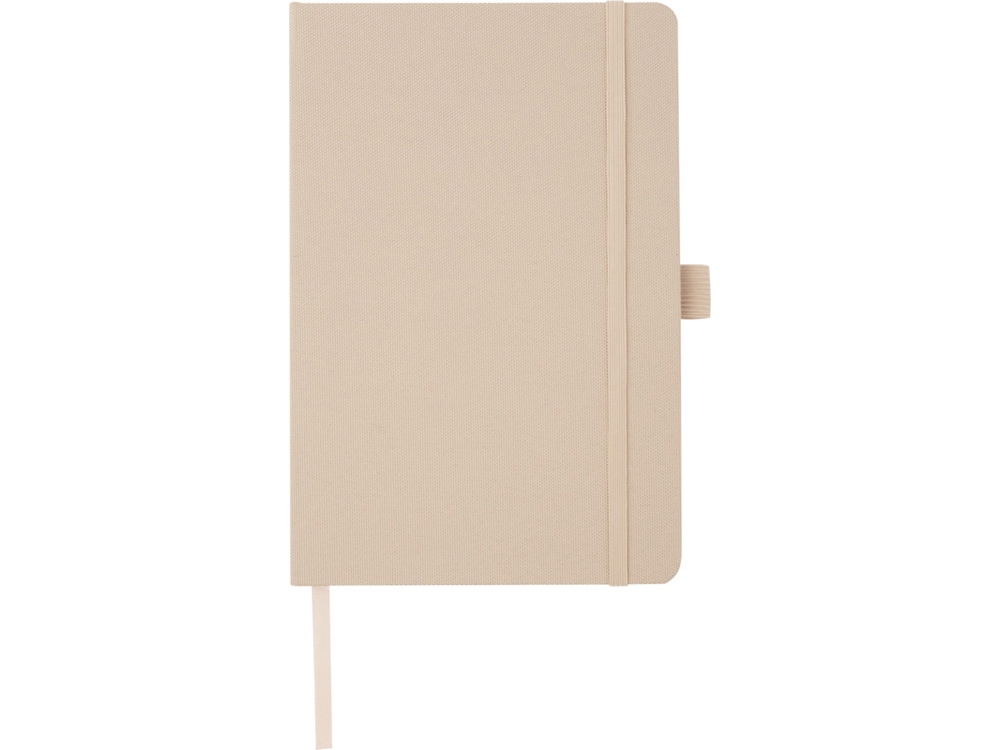 Блокнот формата А5 с обложкой из переработанного ПЭТ. Содержит 80 листов в линию плотностью 70 г/м², изготовленных из переработанной бумаги, с петлей для ручки и лентой-закладкой. Может быть дополнен шариковой ручкой Honua 107757 из переработанного ПЭТ. Переработанный PET пластик. FSC Recycled 100% P7 CU-COC-877277.