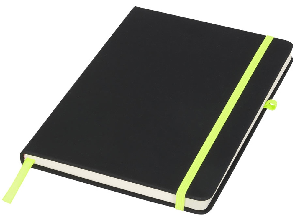Блокнот Noir среднего размера. Блокнот Noir с мягкой на ощупь черной ПУ обложкой. В каждом блокноте есть цветная застежка, держатель для ручки и лента-закладка. Блокнот содержит 96 листов линованной бумаги (70 г/м²) кремового цвета. ПУ.
