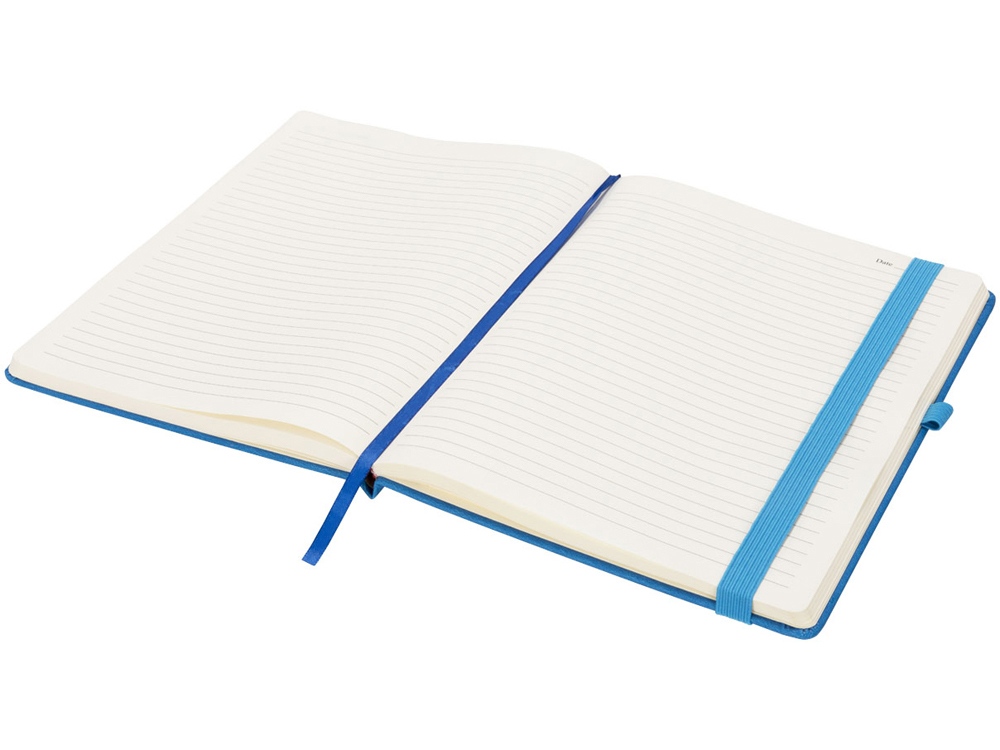 Блокнот Rivista большого размера. Блокнот Rivista отличается стильным современным дизайном с высококачественной обложкой, идеально подходящей для нанесения логотипа и информации вашей компании. Предлагаются современные цвета. Также предусмотрена эластичная застежка, держатель для ручки, лента-закладка и кармашек изнутри на задней стороне обложки. Содержит 128 листов линованной бумаги (70 г/м²) кремового цвета. ПУ.