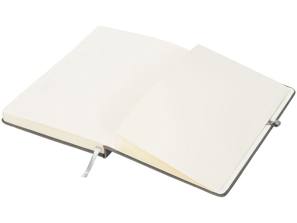 Блокнот Rivista среднего размера. Блокнот Rivista отличается стильным современным дизайном с высококачественной обложкой, идеально подходящей для нанесения логотипа и информации вашей компании. Предлагаются современные цвета. Также предусмотрена эластичная застежка, держатель для ручки, лента-закладка и внутренний кармашек на задней стороне обложки. Содержит 128 листов линованной бумаги (70 г/м²) кремового цвета. ПУ.