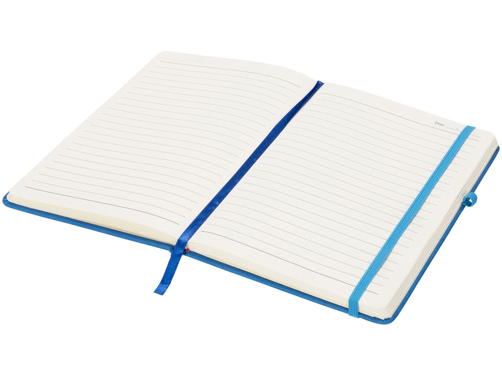 Блокнот Rivista среднего размера. Блокнот Rivista отличается стильным современным дизайном с высококачественной обложкой, идеально подходящей для нанесения логотипа и информации вашей компании. Предлагаются современные цвета. Также предусмотрена эластичная застежка, держатель для ручки, лента-закладка и внутренний кармашек на задней стороне обложки. Содержит 128 листов линованной бумаги (70 г/м²) кремового цвета. ПУ.