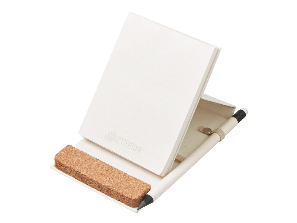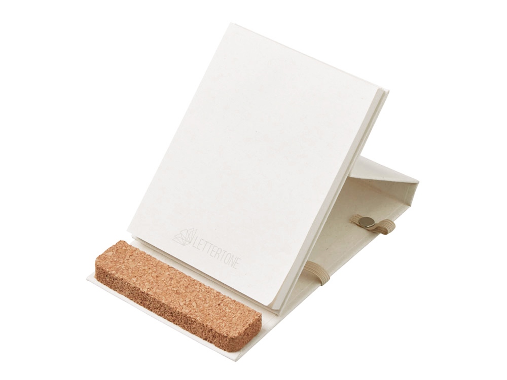 Блокнот с подставкой для телефона из пробки Milky S, молочно-белый купить оптом и в розницу с нанесением логотипа в Казани