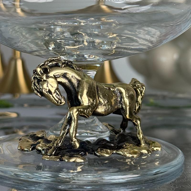 • На ножке бокала композиция из фигуры лошади