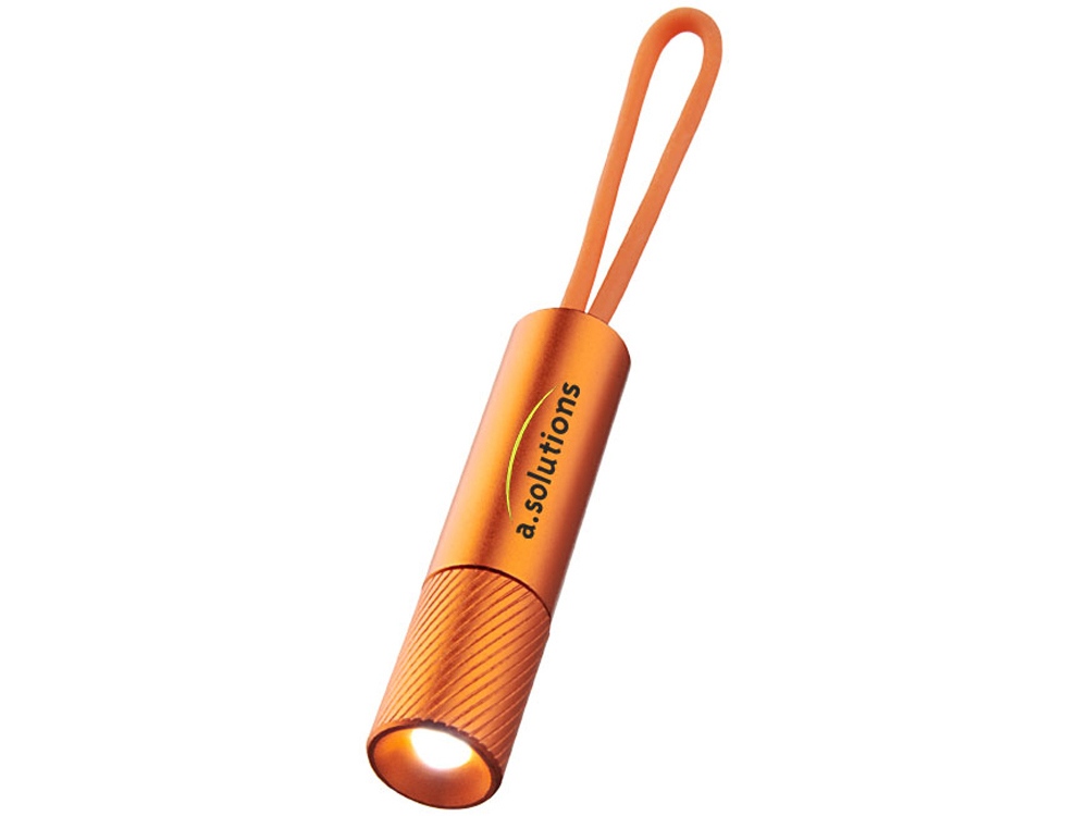 Брелок-фонарик Merga - это легкий и компактный промо-подарок для коллег и клиентов. Светодиодный фонарик включается с помощью поворотного механизма и оснащен силиконовой петелькой, светящейся в темноте. Корпус фонарика изготовлен из алюминия. В комплекте идут батарейки.
