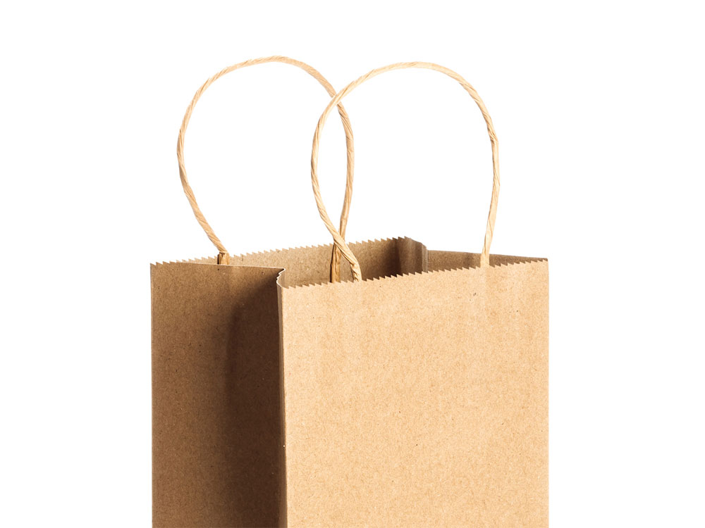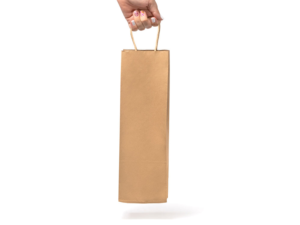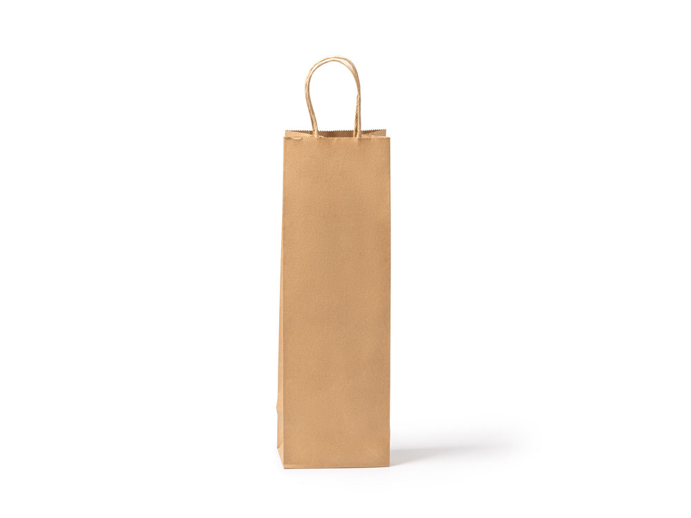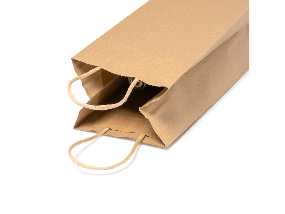 Бумажный пакет 100 гр натурального цвета. Усиленные короткие ручки витого дизайна. Идеально подходит для бутылок.