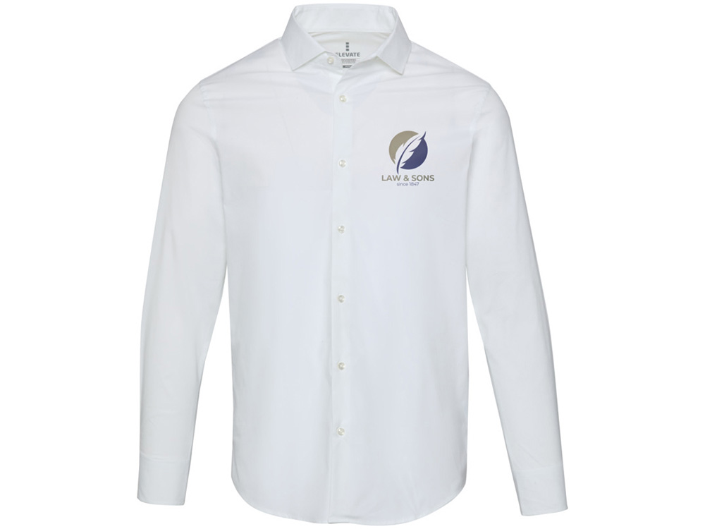 Мужская рубашка из поплина с длинными рукавами Carnelian сочетает в себе современную изысканность и повышенный комфорт. Изготовленная из высококачественного хлопка, сертифицированного BCI, с добавлением эластичности, она имеет усовершенствованную двухслойную структуру волокна плотностью 30 денье, которая обеспечивает гладкость верхнего слоя, исключительную долговечность и роскошные ощущения. Легкое переплетение волокон поплина создает аккуратный и лаконичный внешний вид, а классический крой обеспечивает свободу движений и комфорт в течение всего дня. Модель Carnelian с классическим воротником стандартного кроя является универсальным выбором как для работы, так и для повседневной носки. Поплин97% Хлопок BCI, 3% Эластан, 133 g/m2.