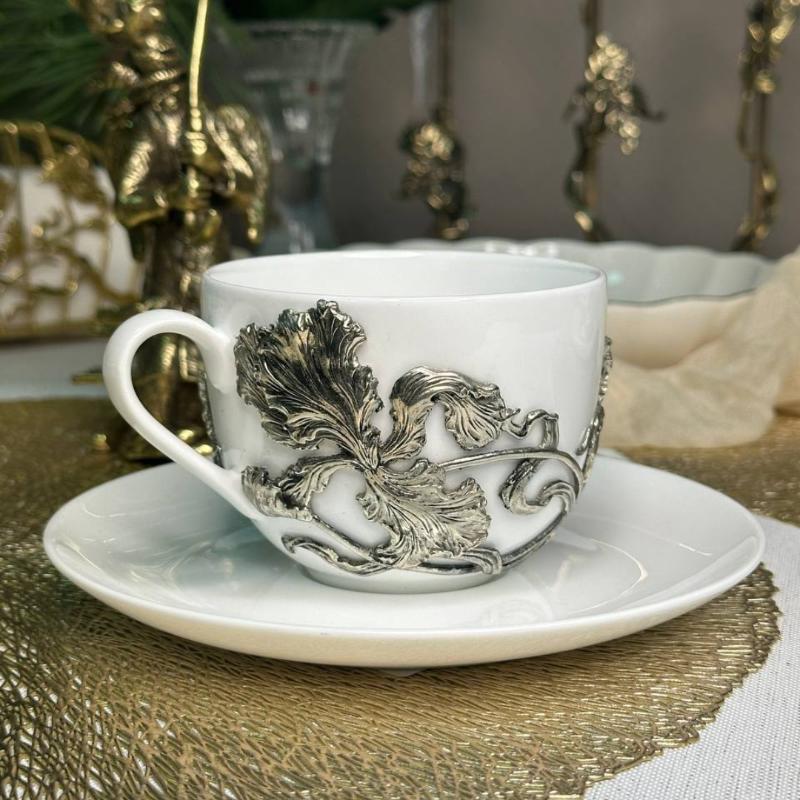 Чашка с блюдцем Ирис в подарочной упаковке купить оптом и в розницу с нанесением логотипа в Казани