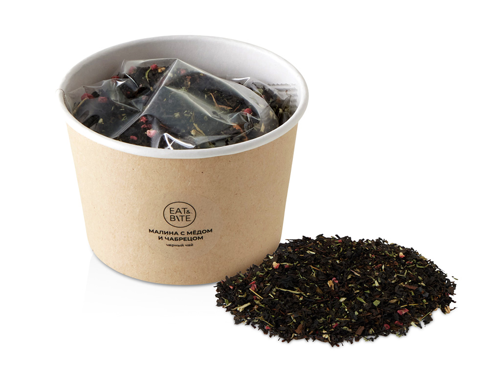 Чай черный Малина с медом и чабрецом в картонном стаканчике, 50 гр.