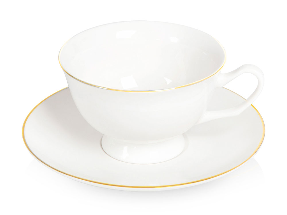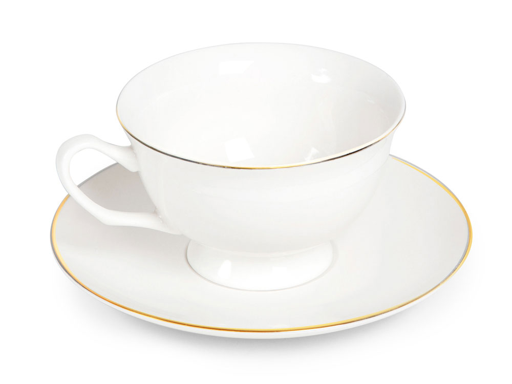 Изящная чайная пара с золотистым кантом от Eat&Bite создаст особенную атмосферу чаепития по-английски. Костяной фарфор очень лёгкий и тонкий и слегка просвечивается. Но несмотря на это, посуда из него достаточно прочная и прослужит вам долгие годы. Эта чайная пара прекрасно подойдёт не только для чая, но и для кофе. • Утончённый дизайн • Костяной фарфор • Подходит как для чая, так и для кофе Чайную пару рекомендуется мыть вручную с использованием мягких моющих средств и не использовать в микроволновке.