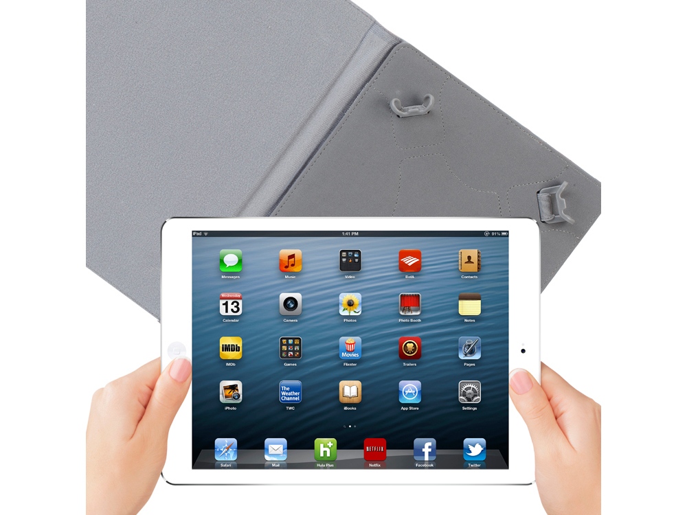 Чехол для планшетов до 10.1''. • Универсальный чехол для планшетов до 10.1 (Apple iPad Air 2 / Samsung Galaxy Tab4 10.1/GALAXY Tab PRO 10.1/Galaxy Tab S 10.5 / Acer Iconia Tab A3-A20 / Asus Transformer Book T100TAM / Lenovo IdeaTab S2110). • Чехол выполнен с использованием различных материалов: - материал верха - высококачественная искусственная кожа; - внутренний материал контактирующий с тачскрином - микрофибра; - внутренний материал в зоне крепления (под планшетом) - нескользящая дорогая искусственная кожа. • Запатентованная система крепления 4Sure - универсальные зажимы из гибкого, прочного пластика на высококачественной эластичной ленте. Легко устанавливать и вынимать планшет. • С помощью двух скрытых липучек планшет можно фиксировать под разными углами в режиме просмотра. В закрытом состоянии фиксируется магнитной застежкой. В открытом - застежка крепится к обратной стороне, не мешая работе с планшетом. • Защита от боковых ударов. • Свободный доступ ко всем кнопкам, разъемам и динамикам. Мин. / Макс. внутренний размер (мм): от 155 x 240 / до 185 x 265