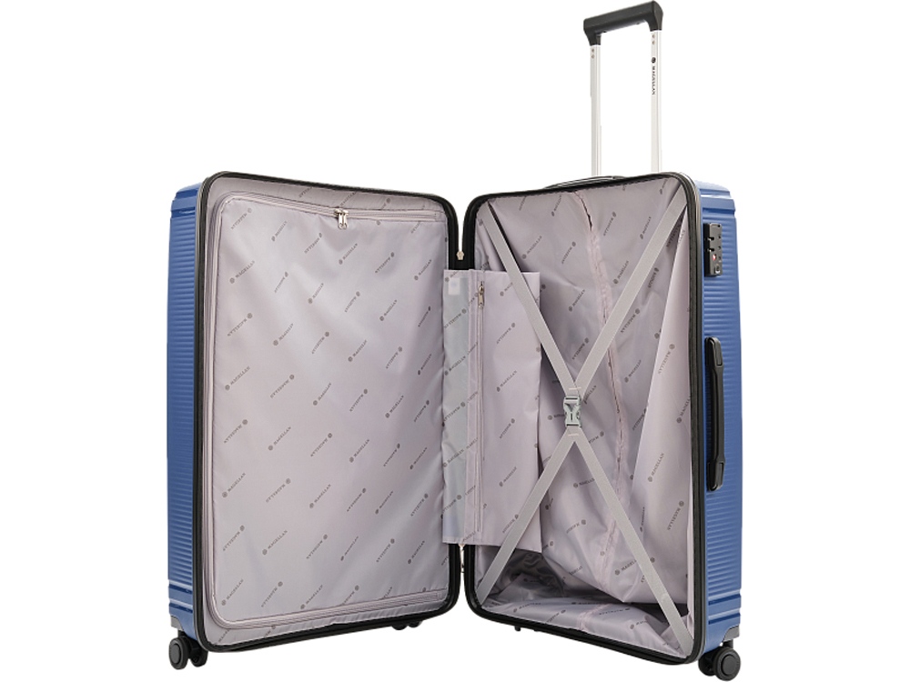 Тринидад (что в переводе с испанского значит Святая Троица) — флагманский корабль первого кругосветного плаванья под командованием Фернана Магеллана. Коллекция TRINIDAD от бренда MAGELLAN – это коллекция, микро-реберный дизайн которой вдохновлён античной архитектурой Греции, матово-глянцевая фактура с Т начертанием отсылает к названию коллекции. Чемоданы TRINIDAD выполнены из легкого и прочного полипропилена, который защитит ваши вещи от ударов и повреждений во время перевозки. Внутреннее пространство чемоданов удобно организовано и оборудовано упаковочными ремнями, позволяющими зафиксировать ваши вещи внутри. - Втяжная ручка для переноски - Двойная выдвижная телескопическая ручка - Функция увеличения объема в моделях формата ручная кладь - Микро реберный дизайн с матово-глянцевой фактурой - Интегрированная система крепления колес - Двойная четырехколесная система - Встроенный кодовый замок с функцией TSA - Тканевый разделитель на молнии - Боковой карман на застежке молнии - Брендированный тканьевый подклад из полиэстера - Перекрестные упаковочные ремни