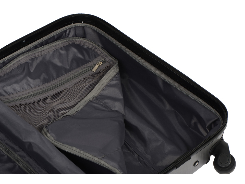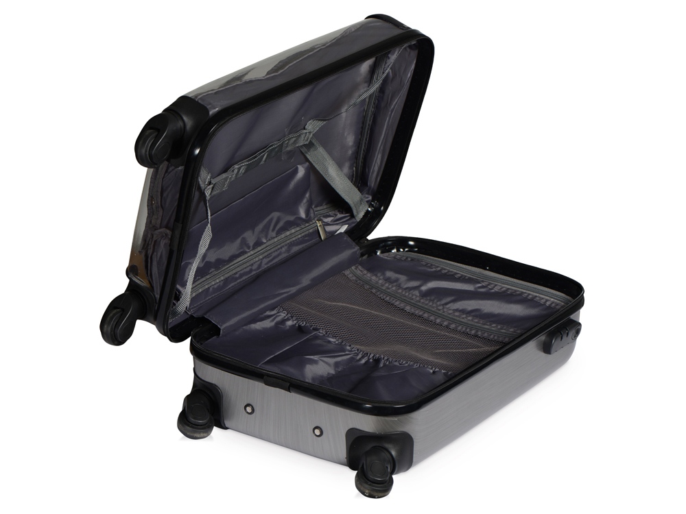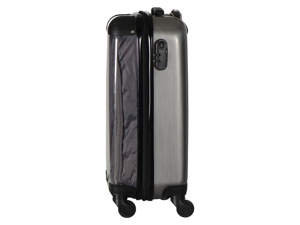 Удобен и незаменим для поездок на любые расстояния, можно брать в салон самолета благодаря компактному размеру, который был специально разработан в соответствии с требованиями большинства авиакомпаний. Одна боковая сторона из прозрачного пластика с возможность размещать бумажную вставку с вашим нанесение, 2 вместительных отделения - одно на молнии с чехлом, второе - с ремнями для фиксации одежды. На подкладке 2 внутренних кармана на молнии для хранения мелочей. - 4 устойчивых колеса вращаются на 360° - Прочный корпус из легкого поликарбоната - Встроенный кодовый замок для большей безопасности - Телескопическая ручка - Защитные накладки на углы против повреждений поверхности - 2 вместительных отделения - Объем 37л