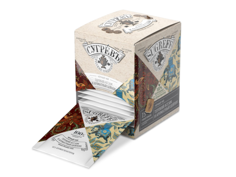 Черный чай Терпкий Ассам и ароматный Цейлон в индивидуальном саше конверте, 15 пакетиков купить оптом и в розницу с нанесением логотипа в Казани
