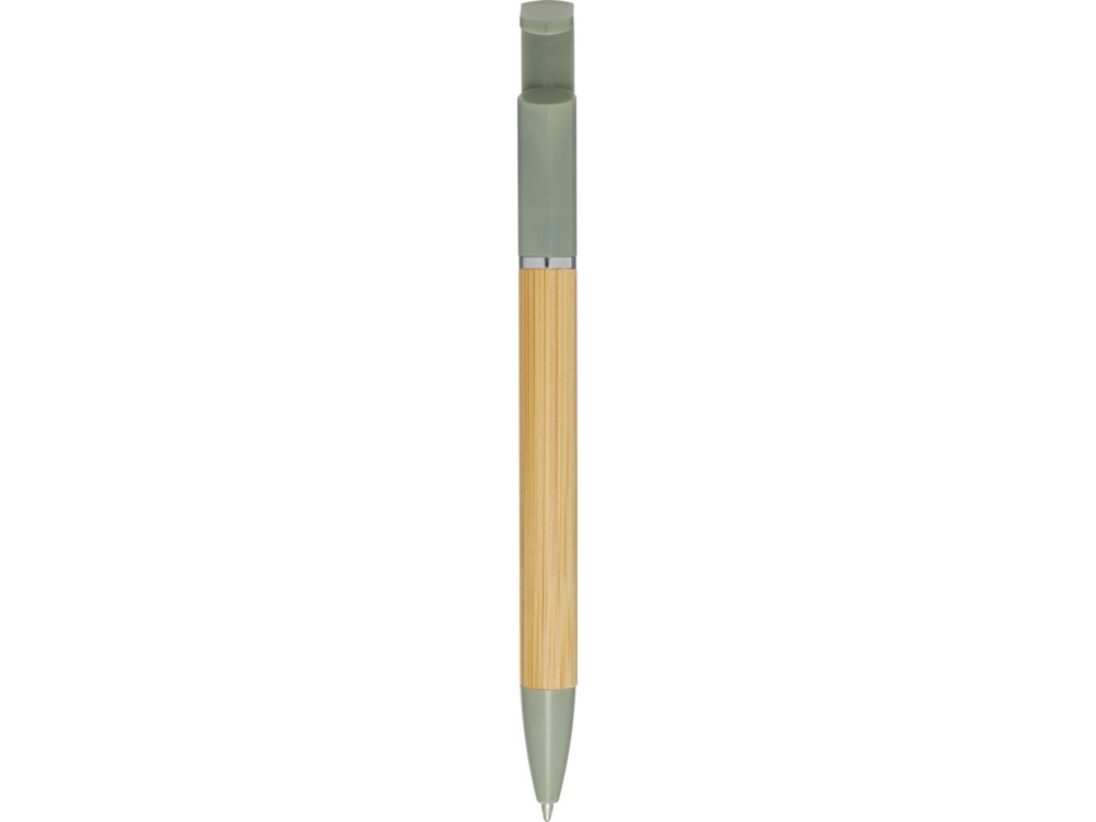 Бамбуковая шариковая ручка, которая также может служить подставкой для телефона. Кнопка и среднее кольцо изготовлены из переработанного пластика, наконечник — из латуни, а корпус — из бамбука, полученного из ответственных источников. Цвет чернил: синий. Длина непрерывной линии: 1000 метров. Размер пера: 1,0 мм. FSC certified bamboo. FSC Mix Credit N5 CU-COC-877277.