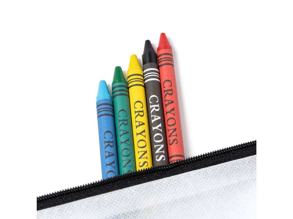 Детский пенал с рисунком-раскраской. В комплекте 5 восковых карандашей разных цветов.
