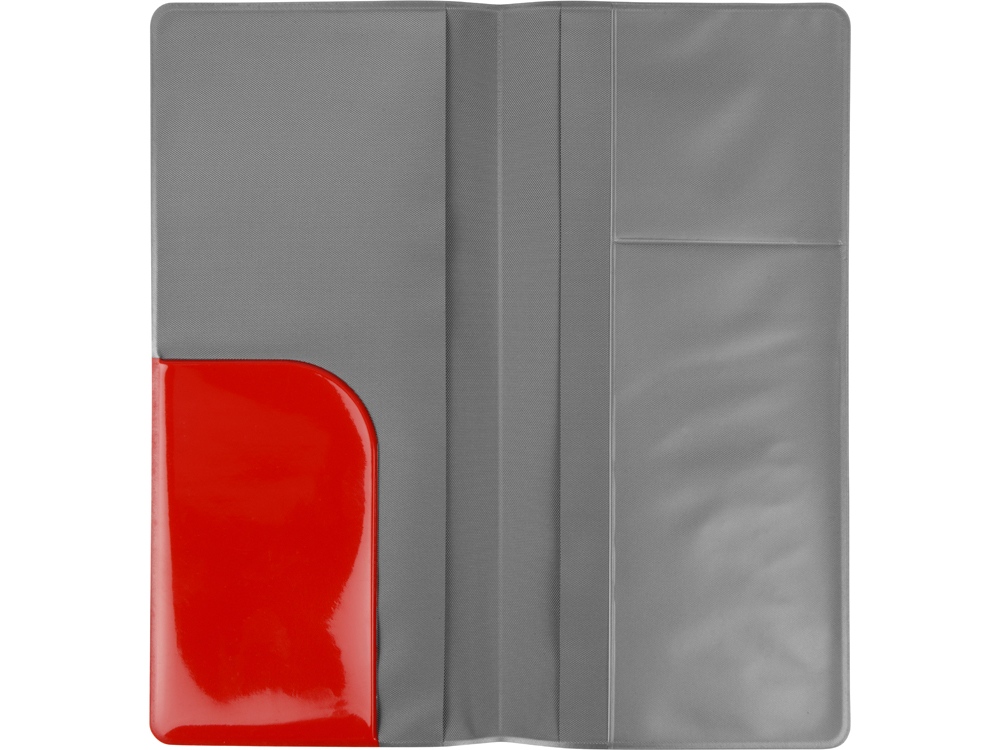 Дорожное портмоне – полезный аксессуар для всех, кому приходится часто путешествовать. • Аксессуар выполнен из морозостойкого и прочного ПВХ; • внутри отделан контрастным серым материалом; • многофункционален: предусмотрено 5 отделений для самых разных документов, таких как паспорт, билеты, карточки, водительские права; • гладкая поверхность предназначена для нанесения логотипа компании.