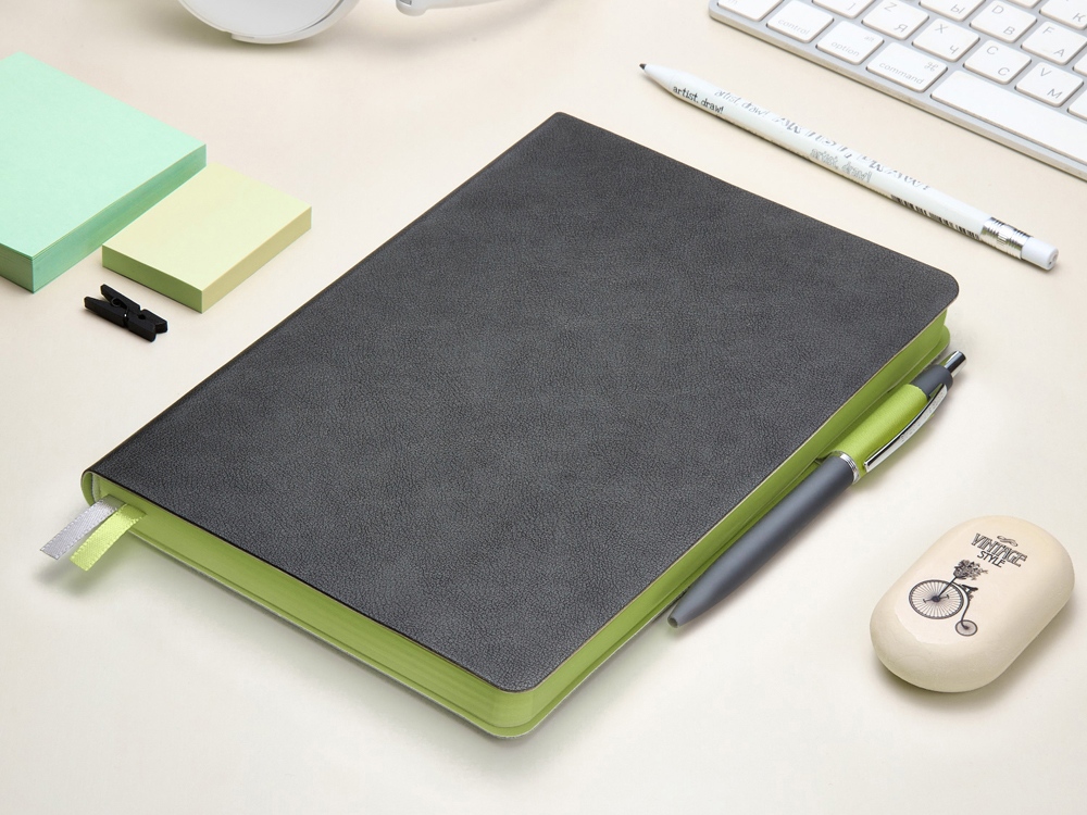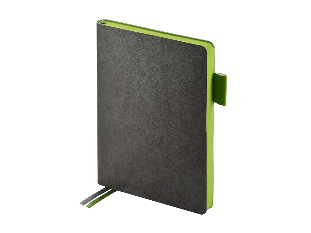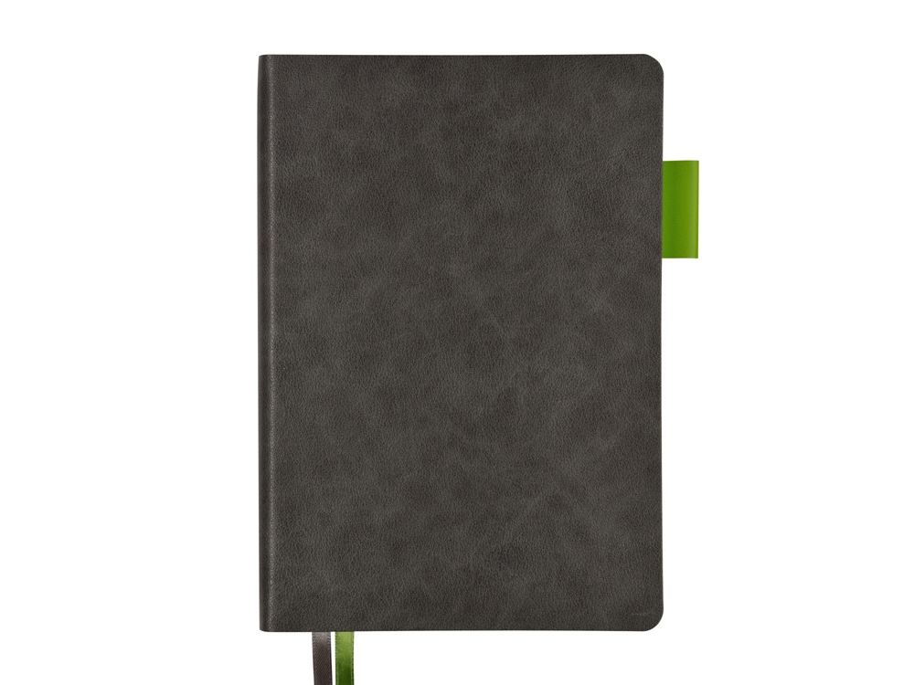 Ежедневник А5 датированный Boston 2026, серый с салатовым обрезом