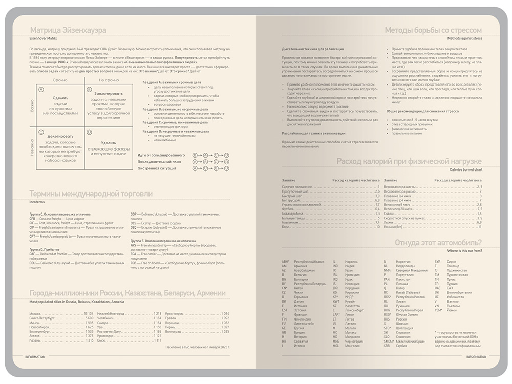Стильный и современный, практичный и удобный, недатированный ежедневник Megapolis Color от Bruno Visconti для планирования рабочего времени и ведения деловых записей. Обложка изготовлена из искусственной кожи с Soft Touch покрытием. Обрез выполнен в цвет обложки ежедневника. Блок состоит из 272 страниц бежевой бумаги плотностью 70 г/кв.м. Для удобства навигации предусмотрена закладка-ляссе шириной 7 мм в цвет обложки. Недатированные страницы в серую линейку имеют отдельное место для проставления числа месяца и дня недели. Справочный блок на 17 страницах содержит полезную информацию из различных областей. Ежедневник выпускается в формате А5.
