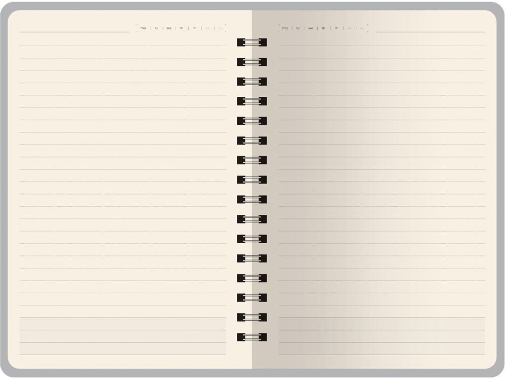Недатированный ежедневник формата А5 Tintoretto ТМ Bruno Visconti - практичное решение для тех, кто любит ежедневники на пружине. Полускрытый гребень позволяет держать ежедневник открытым на столе и комфортно вести записи. 272 страницы блока произведены из превосходной бежевой бумаги плотностью 70 г/кв.м, а неброская линовка каждой страницы позволяет не отвлекаться на лишние детали. Гибкую обложку из искусственной кожи украшает отстрочка декоративной нитью по краю.