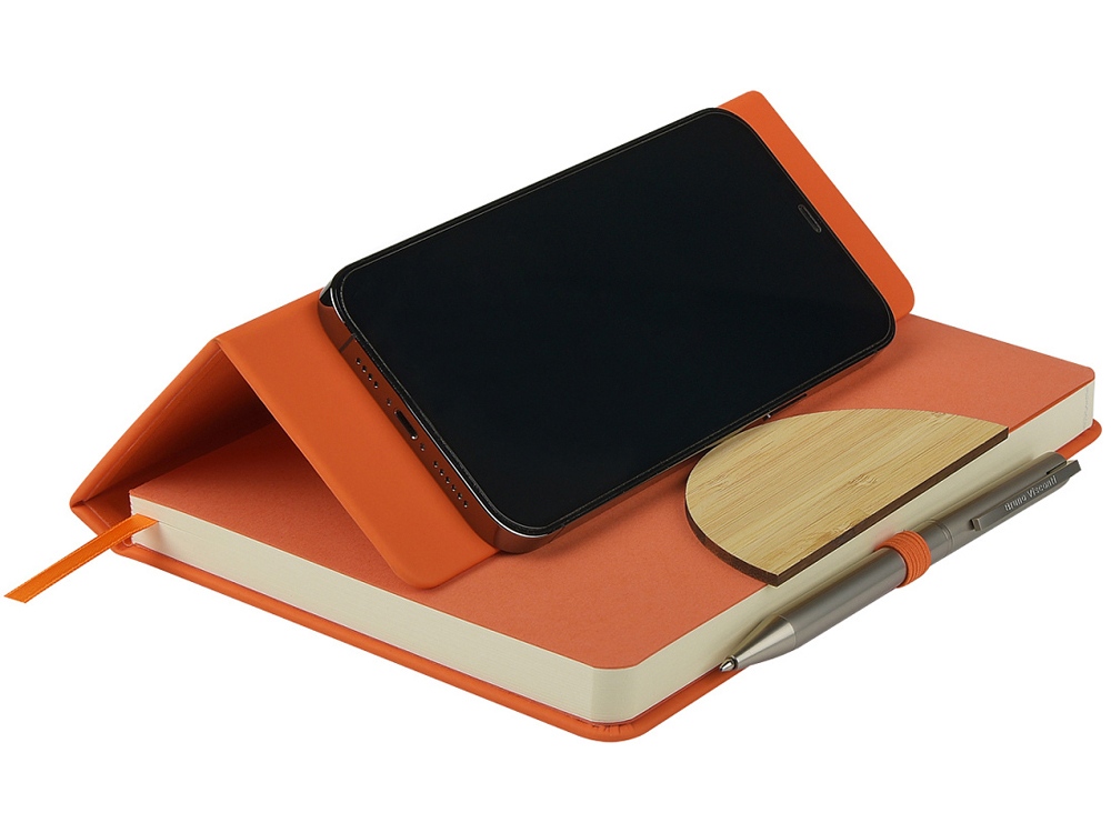 Недатированный ежедневник Bosforo формата А5 от Bruno Visconti - оригинальный по дизайну, удобный и функциональный в эксплуатации. Обложка, выполненная из экокожи с покрытием Soft Touch, создает приятные тактильные ощущения при соприкосновении с ежедневником. Украшает обложку деревянный элемент и вырубка в форме полукруга. Ну, а вишенка на торте – мягкая линия сгиба в центре обложки, позволяющая использовать ежедневник в качестве подставки под телефон. А маленькая петля из резинки – отличное решение для фиксации шариковой ручки, она всегда будет под рукой. Есть еще одна удобная деталь ежедневника - ляссе в цвет обложки для быстрой навигации. Бумажный блок, закрепленный книжным переплетом, выполнен из бежевой офсетной бумаги плотностью 70 г/кв.м и содержит 272 страницы, из которых 17 страниц - справочная информация, а 19 страниц телефонная книга.
