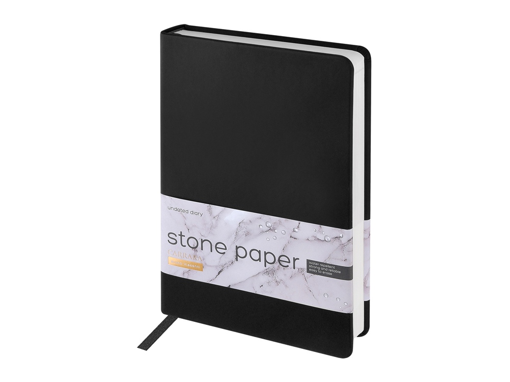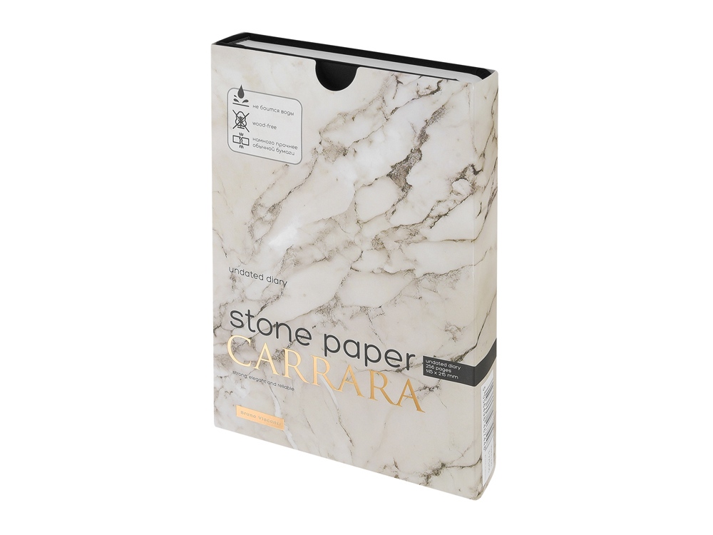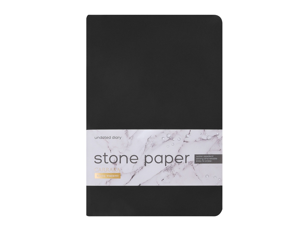 Уникальность недатированного ежедневника Carrara от Bruno Visconti — в его блоке. Он изготовлен из каменной бумаги плотностью 144 г/кв.м, отличающейся особой гладкостью и повышенной прочностью. Она не боится воды и пролитого кофе, достаточно просто протереть сухой салфеткой. Раздел для записей и планирования рабочих и личных дел дополнен справочной информацией на 15 страницах. Блок надежно защищен от замятия твердой обложкой из искусственной кожи с Soft Touch покрытием. Ляссе в цвет обложки шириной 7 мм поможет легко и быстро найти нужную страницу.