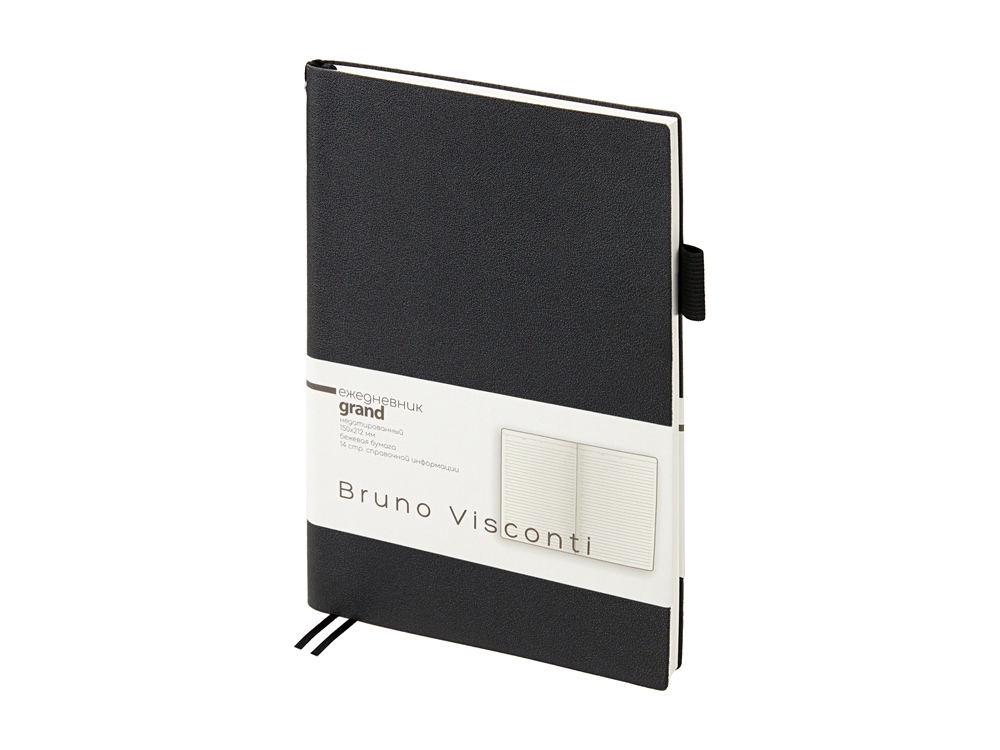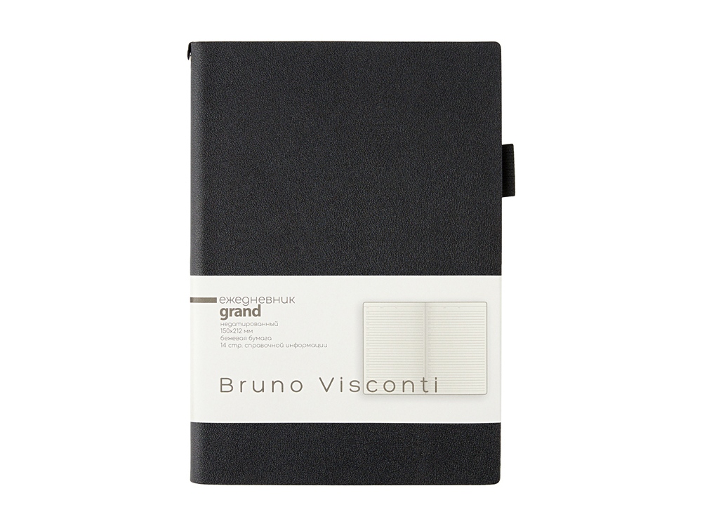 Мягкая, гибкая обложка с необычной фактурой, приятной на ощупь, петля под ручку, двойное ляссе, стандартный формат А5 — все это ежедневник Grand. А благодаря оригинальному способу фиксации ляссе на корешке ежедневник получил новое звучание. Такая фишка придется по вкусу всем, кто придает большое значение деталям. Недатированный блок изготовлен из бежевой бумаги плотностью 80 г/кв.м. Ежедневник имеет справочную информацию на 14 страницах.