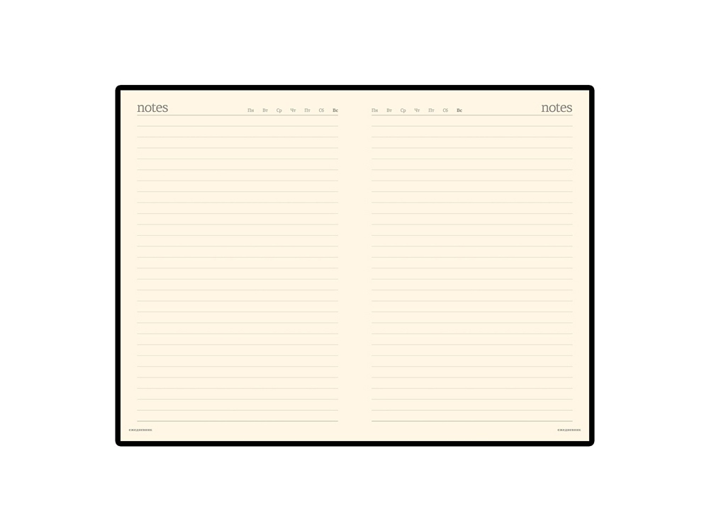 Ежедневник выпускается в универсальном формате А5. Размер обложки – 144*215 мм. В недатированном блоке для записей 320 страниц из тонированной бумаги бежевого цвета. Бумага плотностью 70 грамм. На 16 листах представлен значительный объем справочной информации на русском языке, полезной для бизнеса и повседневной жизни. Дни недели указаны сокращенно на русском языке. Отрывные листы, дополненные микроперфорацией, расположены в конце ежедневника.