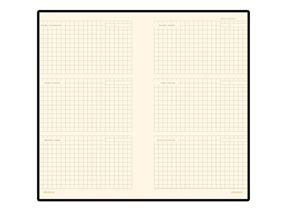Удобный практичный недатированный еженедельник в мягкой обложке из прочного переплетного материала. Контрастная прострочка белыми нитками по периметру привлекает внимание к изящной форме обложки с закругленными уголками. Обложка украшена металлическим шильдиком. Линовка блока - клетка, с указанием дней недели. Карманный формат этого еженедельника позволяет эффективно вести записи на выездных совещаниях, переговорах и встречах. Готов к персонализации.
