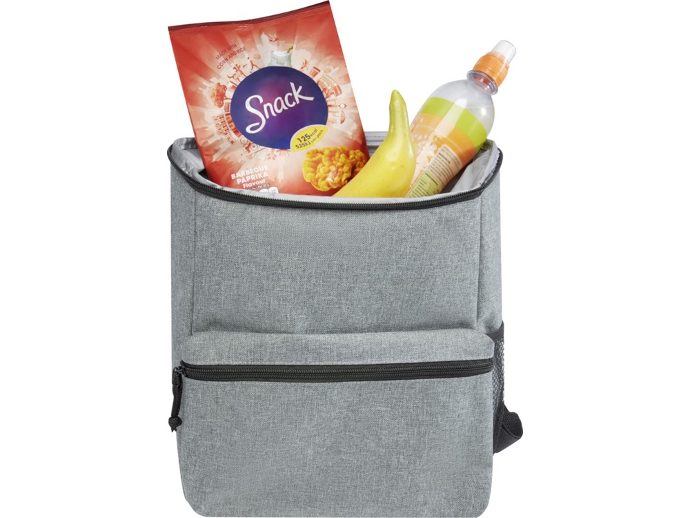 Рюкзак-холодильник Excursion с большим основным отделением на подкладке из PEVA-материала и молнией идеально подходит для того, чтобы взять его с собой в поход или на пикник. Термоотделение изготовлено из переработанного РЕТ-пластика, поэтому является экологичным выбором. Имеет боковой сетчатый карман для бутылки с водой, а в передний карман на молнии можно положить небольшие предметы. Мягкие плечевые ремни можно отрегулировать для идеальной и удобной посадки.