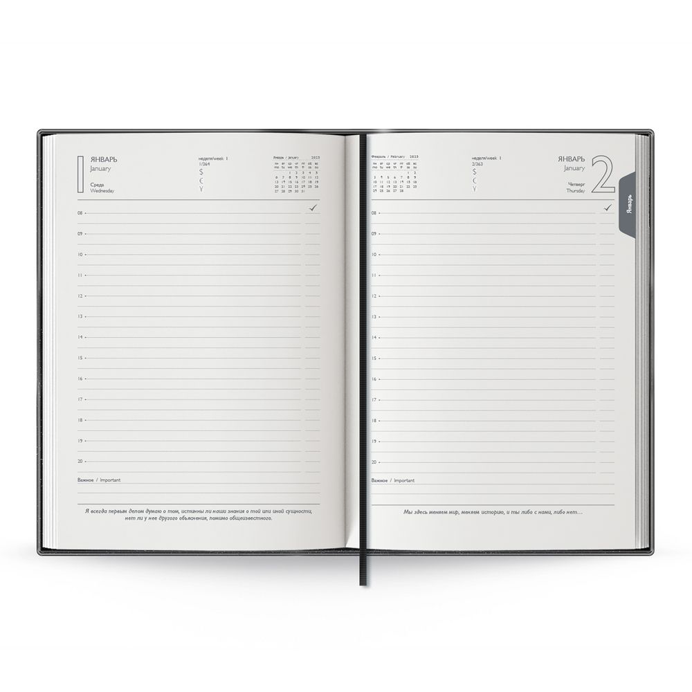Ежедневник с твердой обложкой с поролоном из искусственной кожи Sarif, дополнен декоративной строчкой, капталом и ляссе в цвет ежедневника.