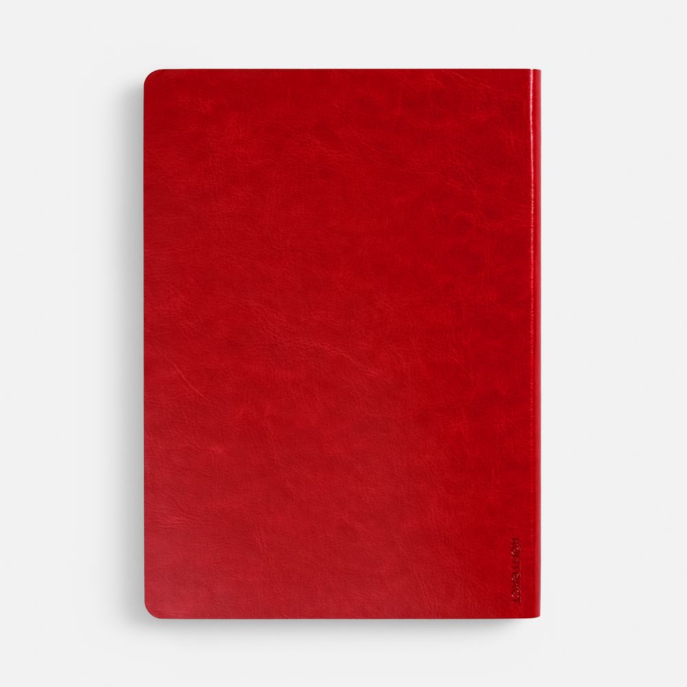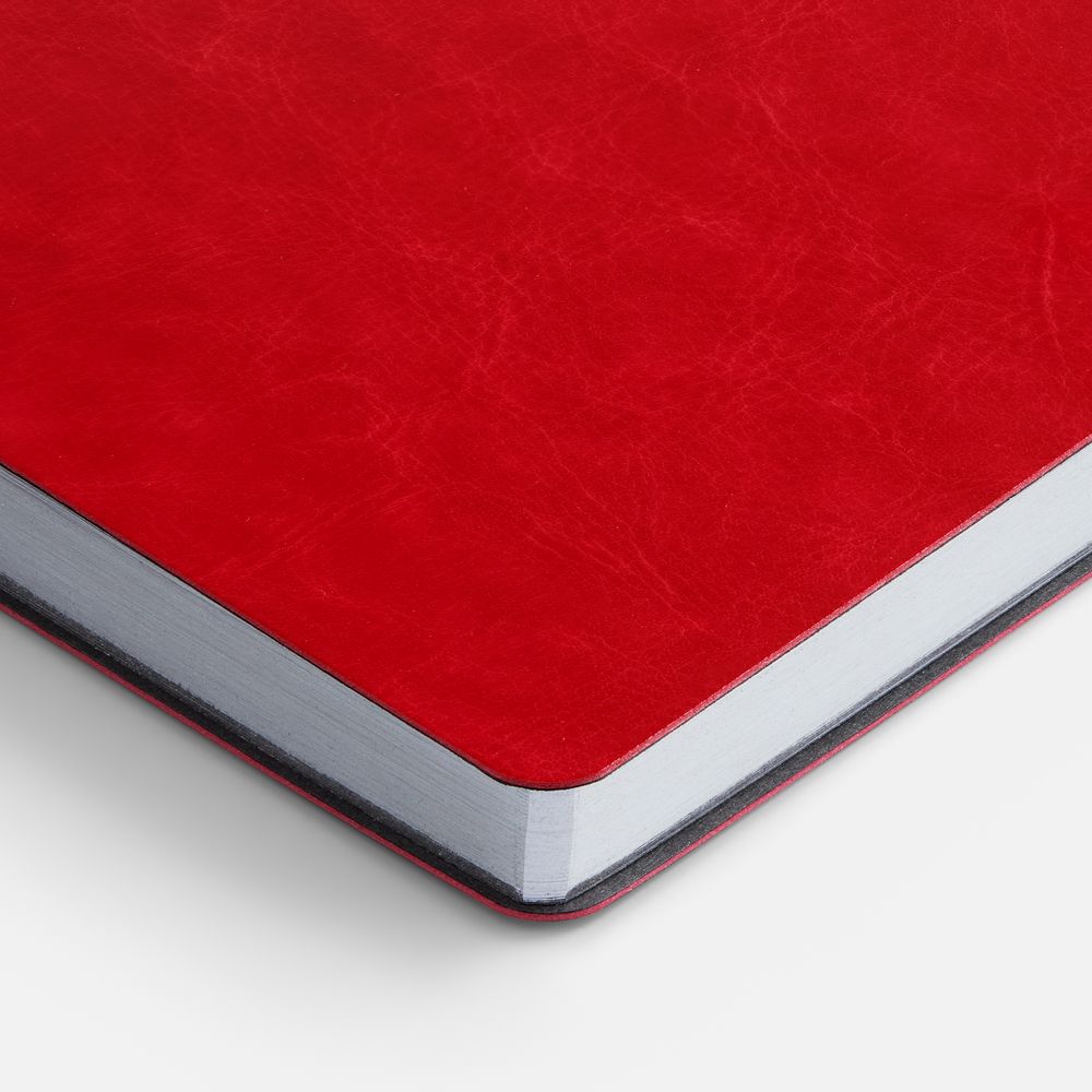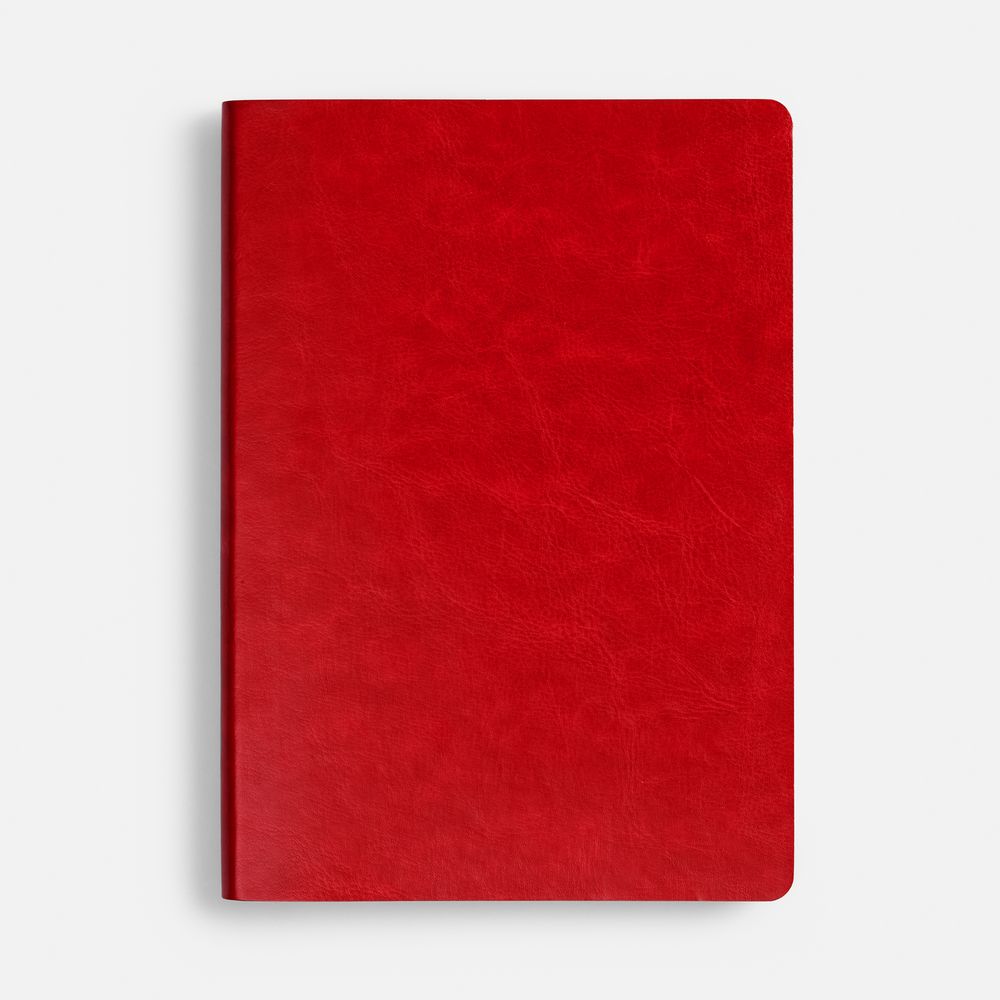 Ежедневник с гибкой обложкой, выполнен из материала Nebraska, красный PP, дополнен ляссе красного цвета.