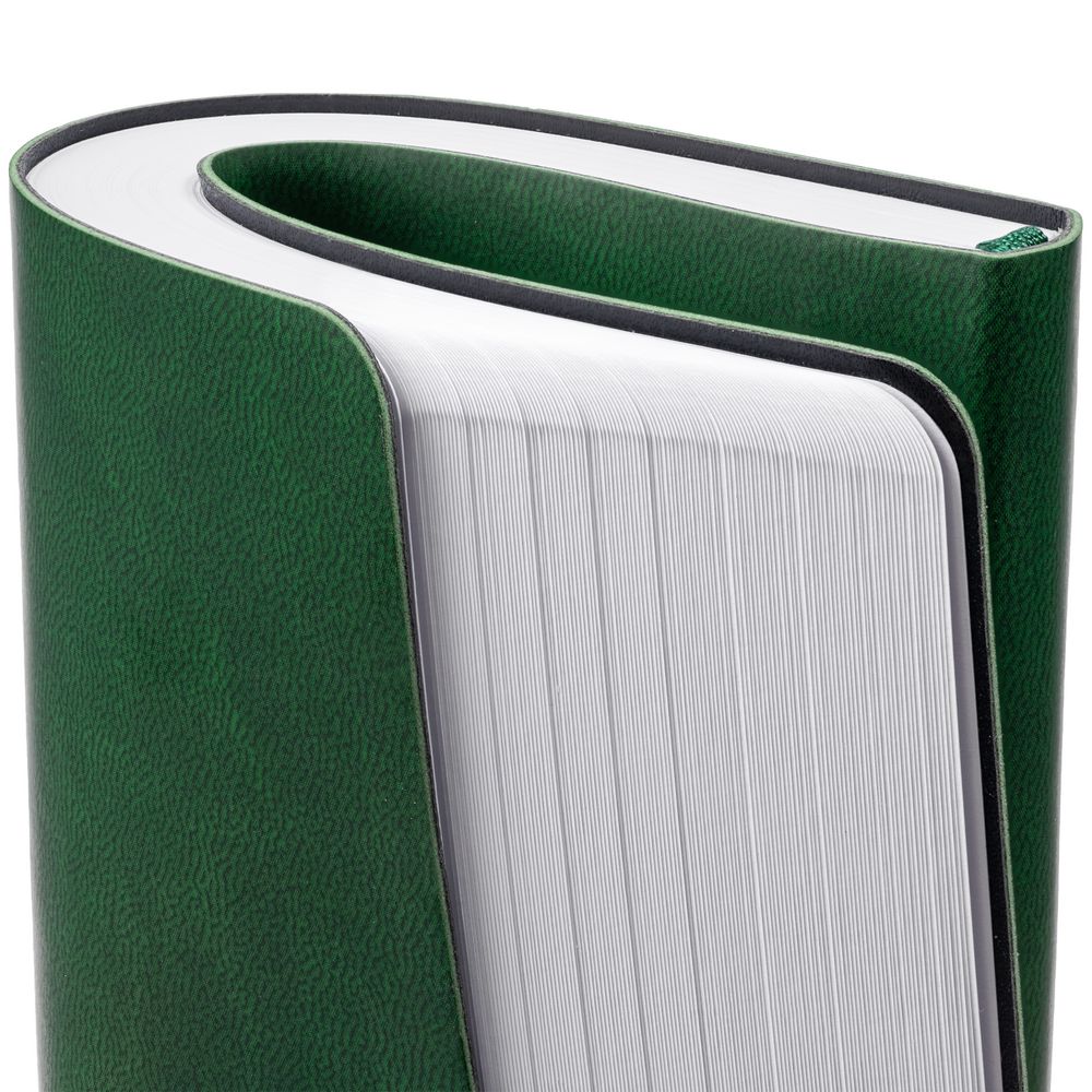 Ежедневник с гибкой обложкой, выполнен из материала Latte, зеленый, дополнен ляссе в цвет обложки.