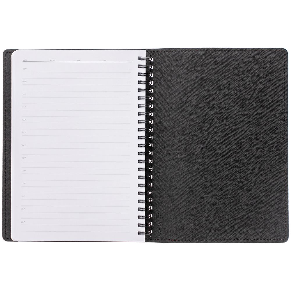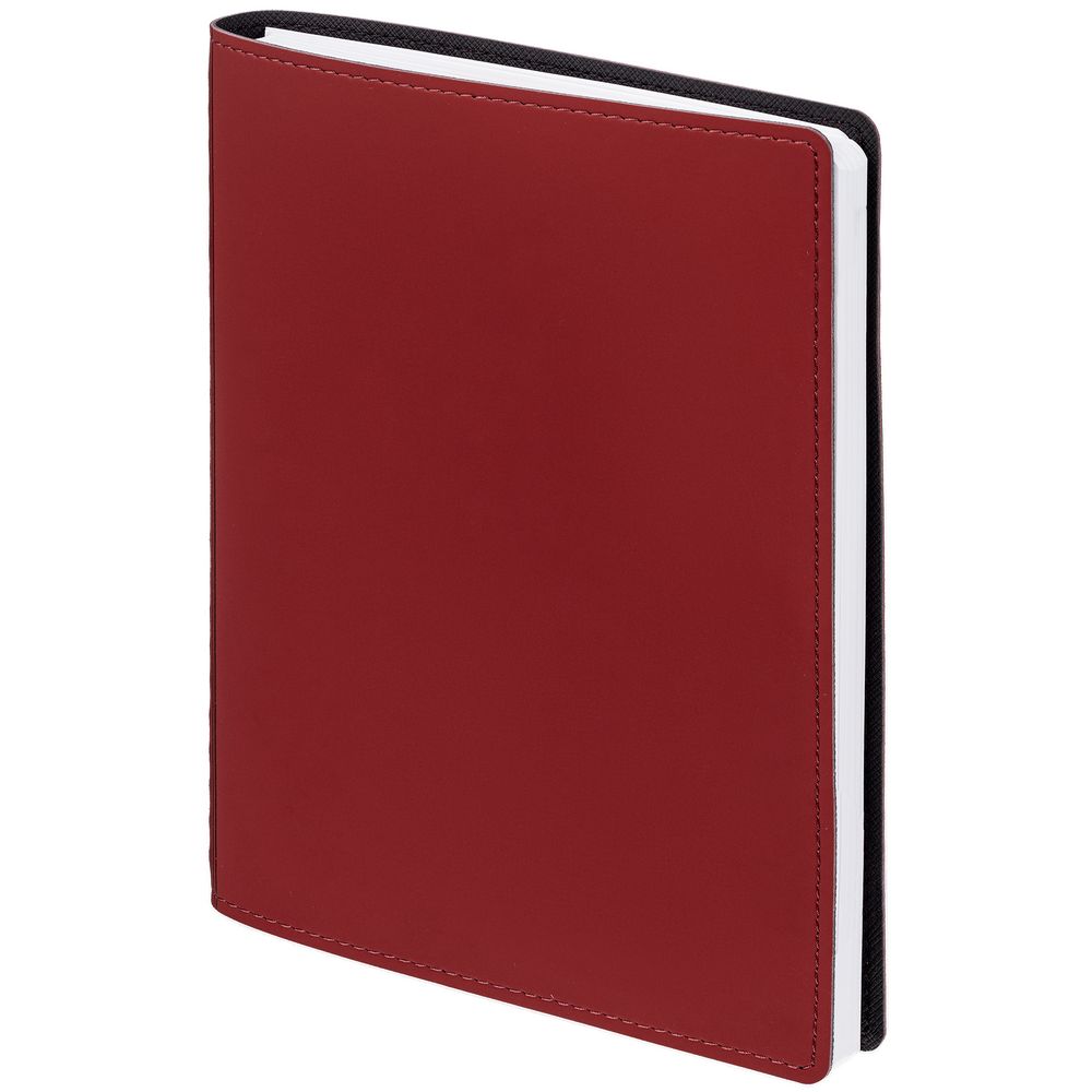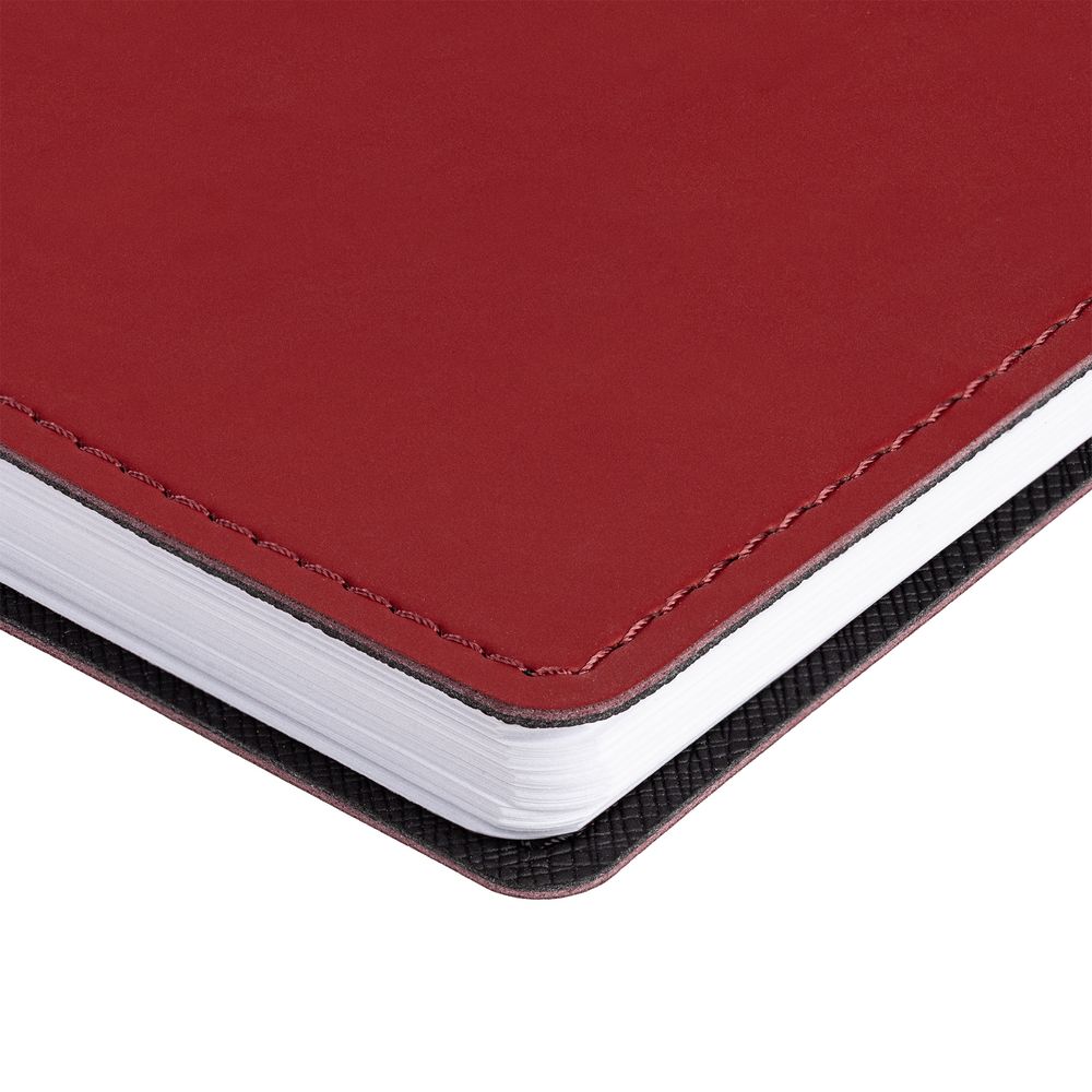 Ежедневник с гибкой обложкой, выполнен из материалов Soft Touch, красный РР и Nice Touch, черный АА.