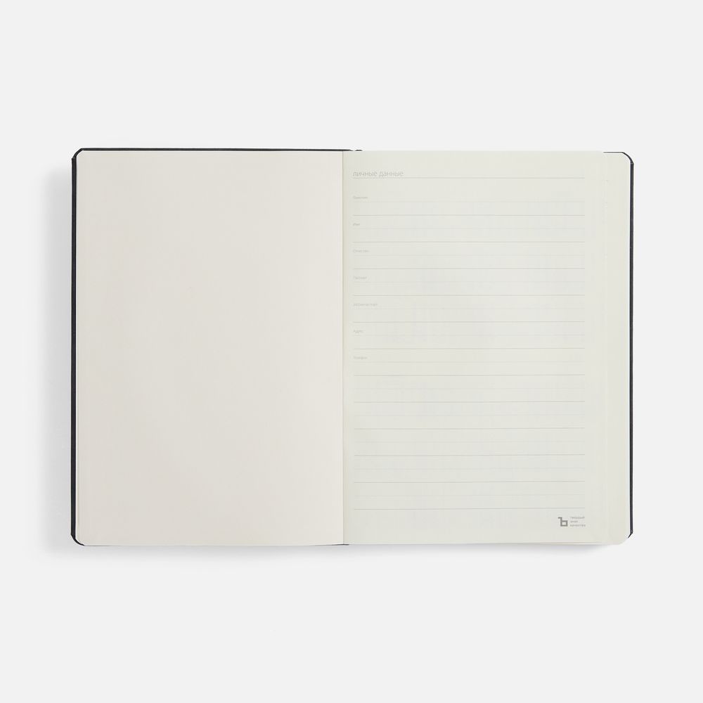 Ежедневник с твердой обложкой, выполнен из материала Nubuck Touch, черный AA, дополнен ляссе в цвет обложки.