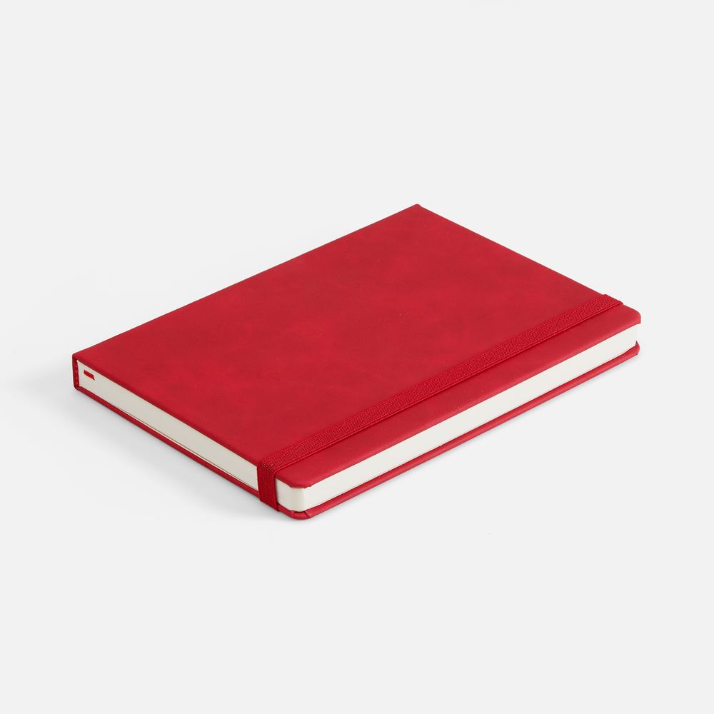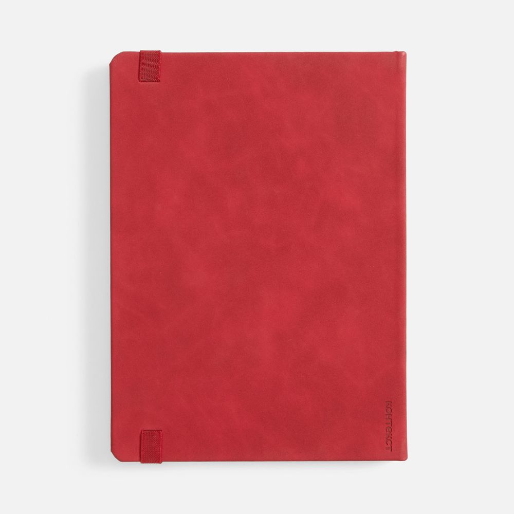 Ежедневник с твердой обложкой, выполнен из материала Nubuck Touch, красный PP, дополнен ляссе в цвет обложки.